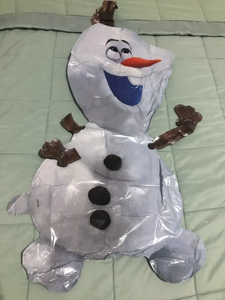 Olaf balloon: filled with helium does not float and doesn’t even stand straight. Too heavy.