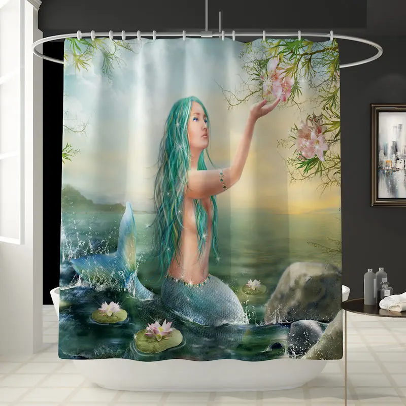 Длинношерстной в виде красивой русалки Водонепроницаемый занавески для душа набор Ванная комната Декор шторы пьедестал коврики для туалета крышка коврик для ванной