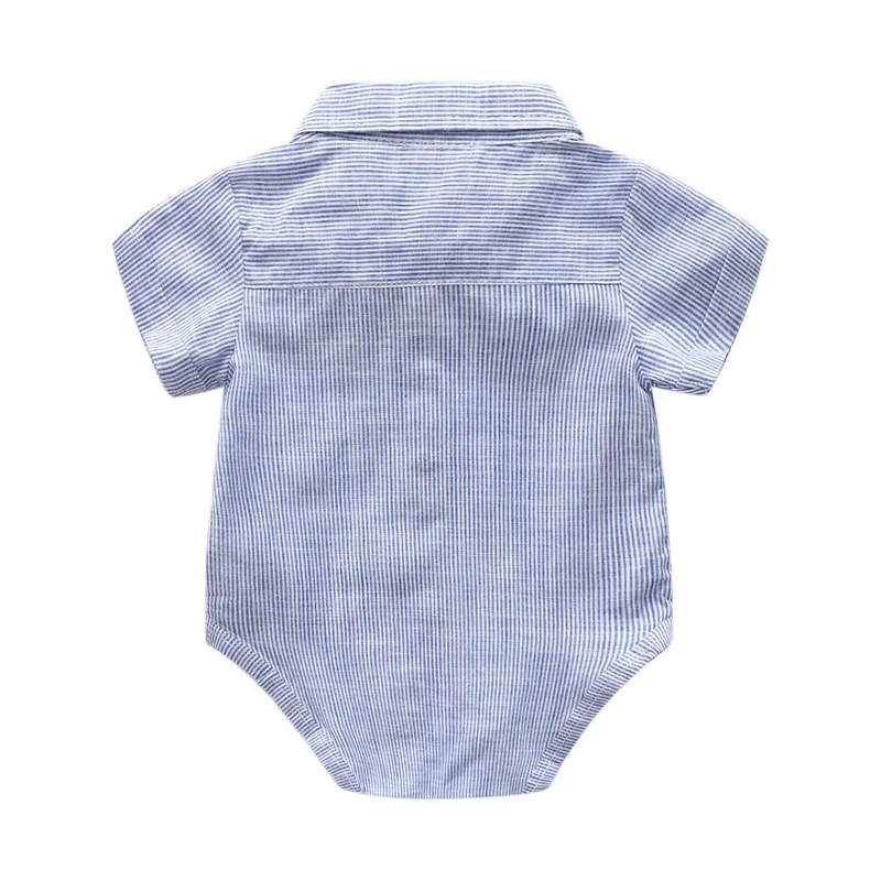 Комплект одежды с галстуком-бабочкой для маленьких мальчиков, Летний Костюм Джентльмена для малышей, детский строгий комбинезон в полоску + штаны на подтяжках