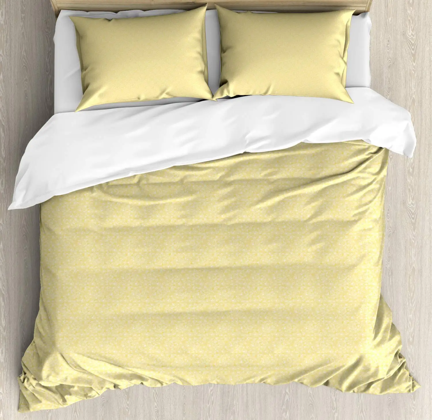 Комплект постельного белья из 3 предметов с цветочным желтым пододеяльником и пастельным узором и цветами