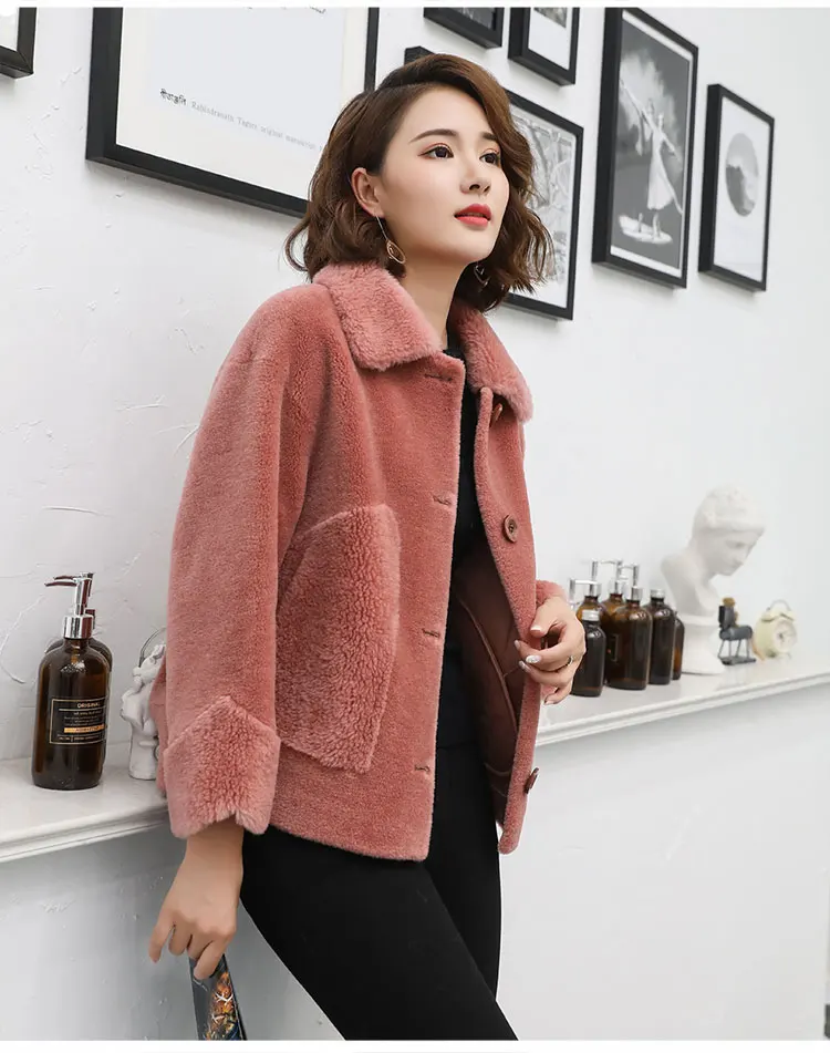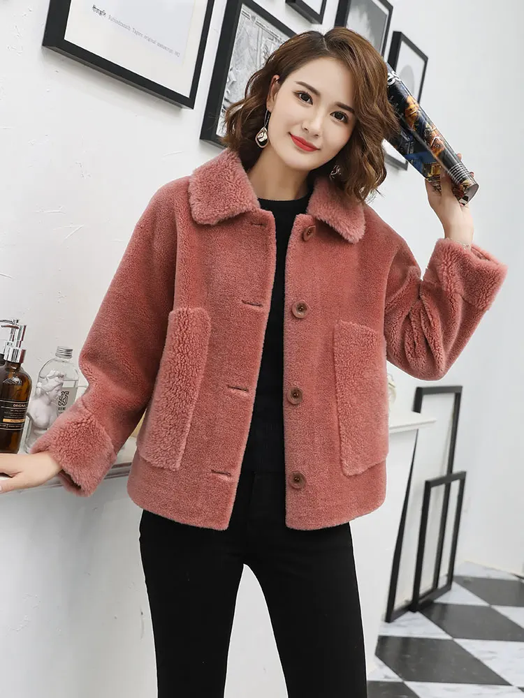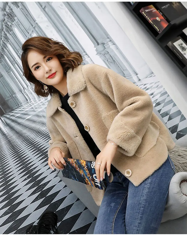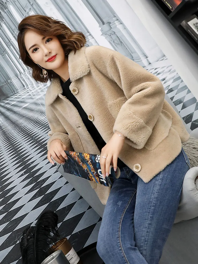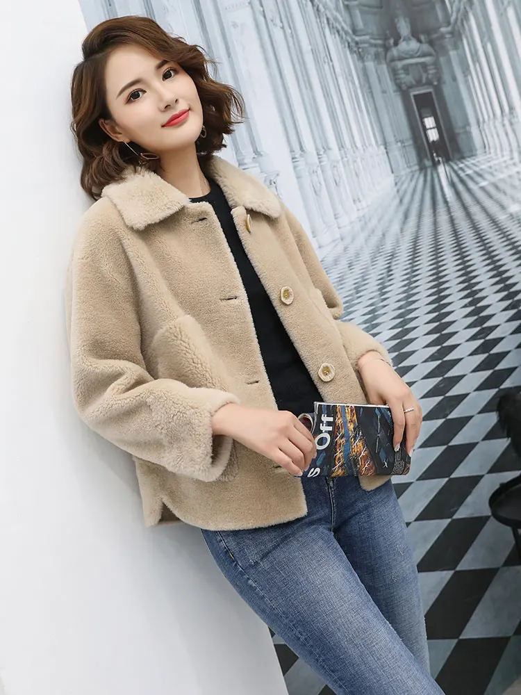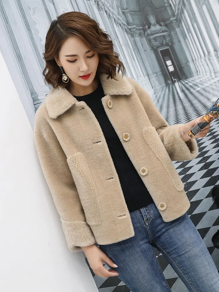 Пальто женское из натуральной овечьей шерсти, с отложным воротником