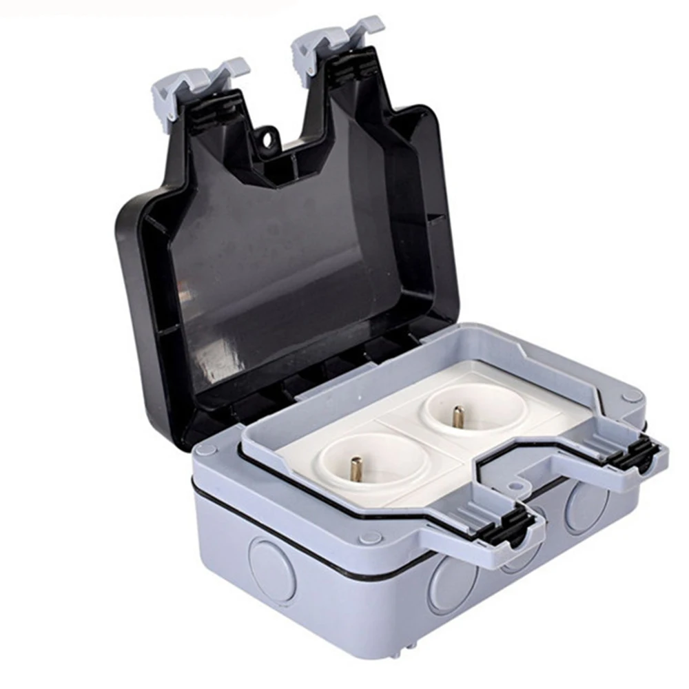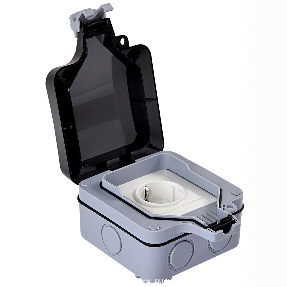 -Это Водонепроницаемая наружная розетка, которая имеет водонепроницаемость IP66, устойчивость к атмосферным воздействиям, полную защиту от дождя и пыли.