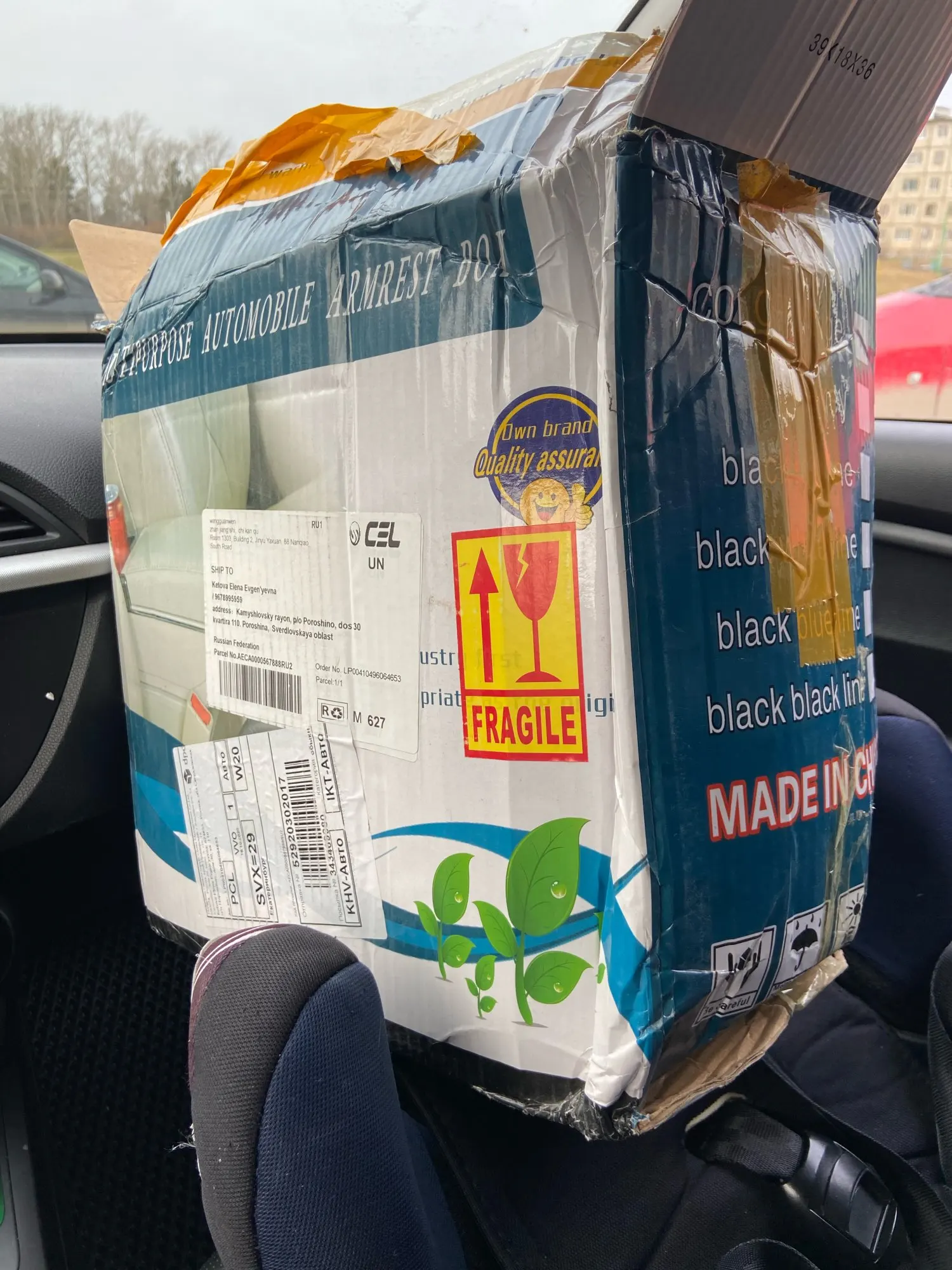 Товар заказала 28.09, 02.10 продавец отправил посылку. В Россию она прибыла 15.10. Долго шла по России, и наконец-то 05.11 я получила свою долгожданную посылку) сам подлокотник хорошего качества, присутствует запах кожи, пластик вроде бы неплохого качества. Но коробка была вся мятая, такое чувство, что коробку вскрыли, и сверху совсем другой скотч прилеплен, но всё на месте, поэтому снижать оценку продавцу не буду. Но то что долгая доставка это минус. Заказывала брелок к сигналке и то пришло за 9дн, хотя он стоит копейки по сравнению с подлокотником. Подлокотник брала с купоном на 1000р, поэтому вышел 2200 с копейками, а так цена 3200.