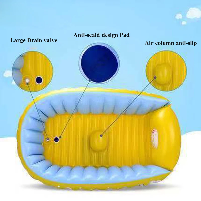 Летняя детская надувная ванна с мультипликационным рисунком, детская ванночка, подушка, сохраняющая тепло, Складная портативная ванна с насосом в подарок