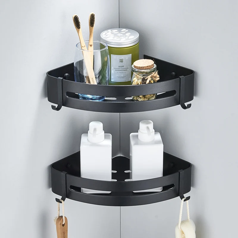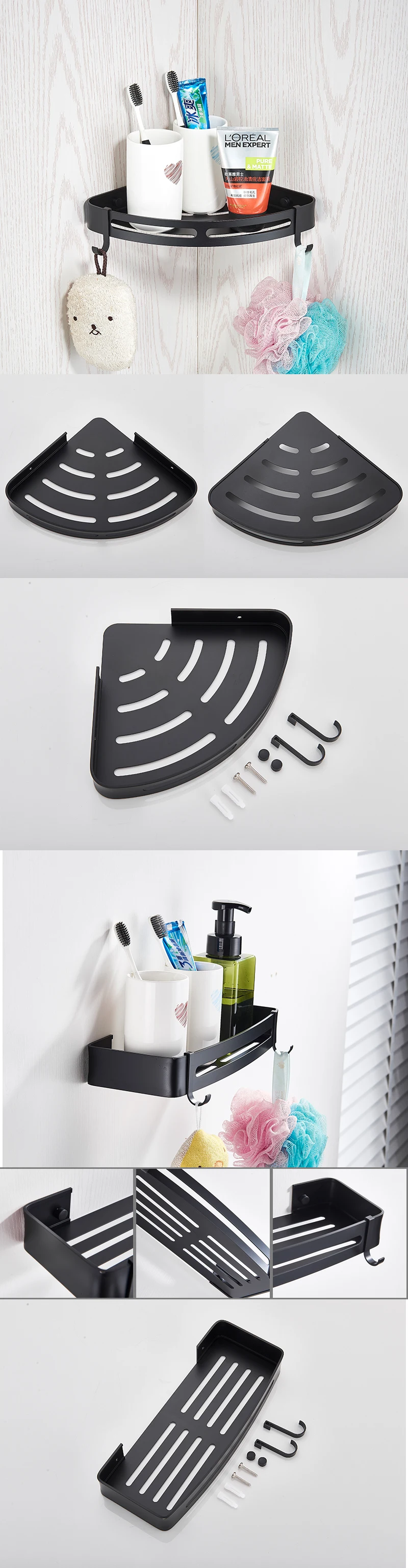 Полка для ванной, душевая полка, держатель для шампуня, угловая полка для ванной, настенное крепление, черный алюминиевый держатель для хранения на кухне