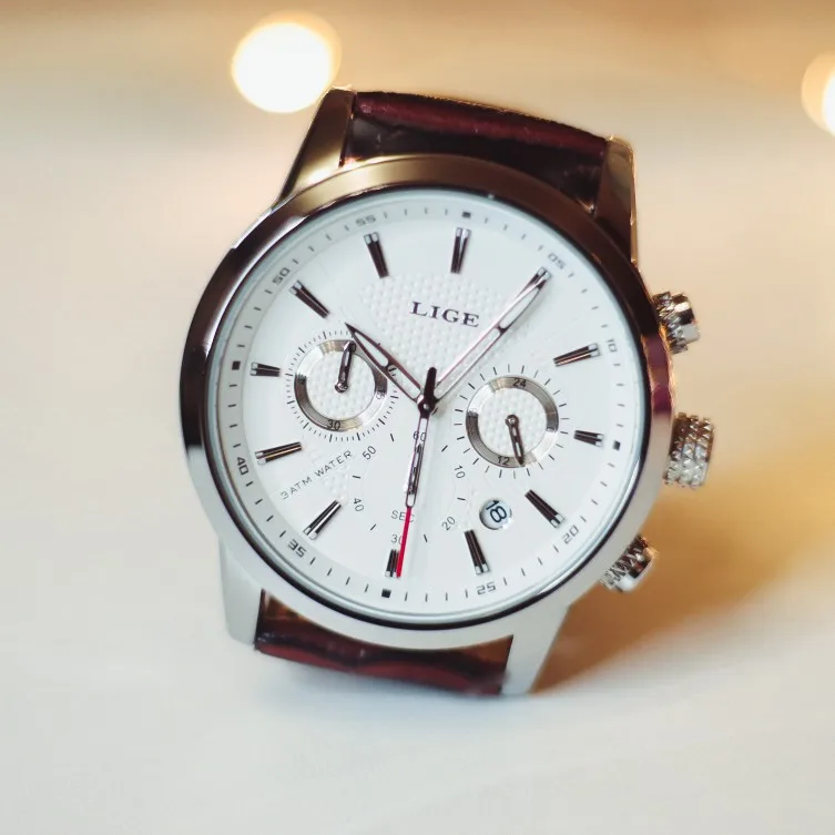 Доставка всего 2 недели и часики я получила, были упакованы в почтовый пакет. Часы приходят в фирменной коробочке с логотипом бренда. Комплектация: часы, салфетка, инструкция. ⠀ ⠀ В коробке часы лежат на мягкой подложке, циферблат был обклеен защитной пленкой. На выбор у продавца представлено несколько вариантов расцветок, для мужа я выбрала с коричневым ремешком и белым циферблатом. Теперь немного о часах: часы имеют кварцевый механизм и хронограф, водонепроницаемый корпус до 30 м., ударопрочное стекло, кожаный ремешок. Циферблат с очень красивым дизайном. Хронограф рабочий. Ход часов точный и тихий. Стрелки и временные отметки светятся в темноте. Для регулировки данных 2 кнопки и одно колесико. ⠀ Диаметр корпуса часов: 42 мм прибл. Толщина корпуса часов: около 10 мм По весу часы комфортные. ⠀ Ремешок кожаный, его длина 22 см, ширина 2 см. Прошит качественно. ⠀