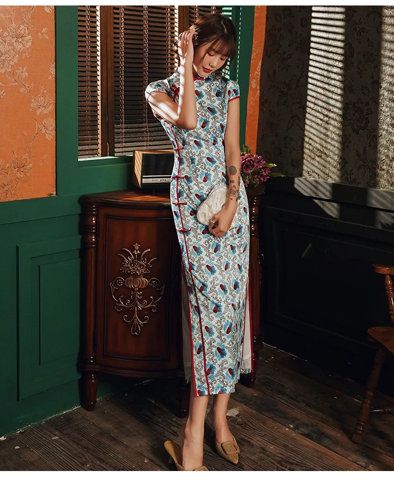 Sheng Coco, классическое шелковое китайское платье чонсам, длинные ...