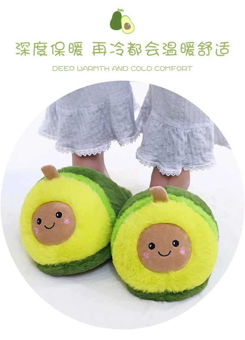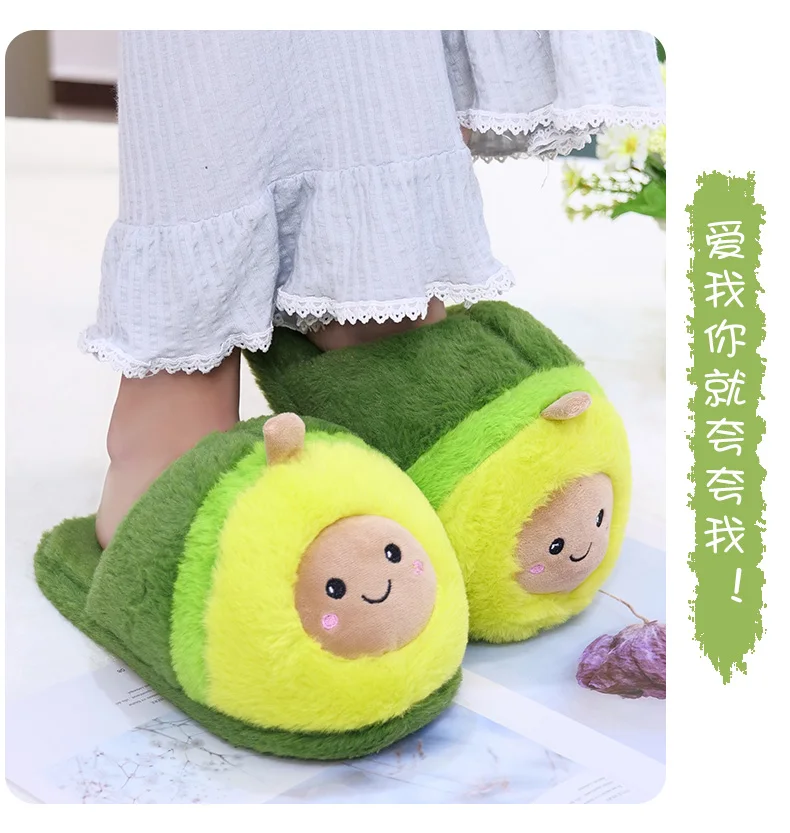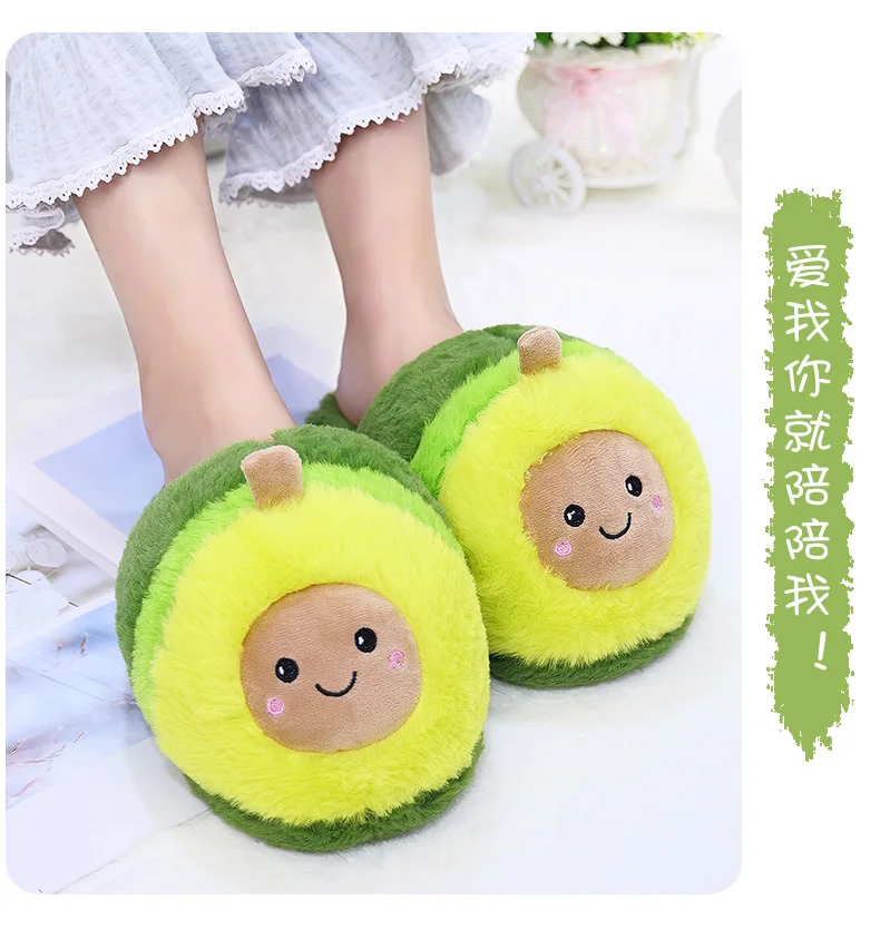 Новые милые мягкие тапочки для девочек, Мультяшные тапочки с фруктами и авокадо, теплые женские тапочки для влюбленных, плюшевая обувь с авокадо для детей