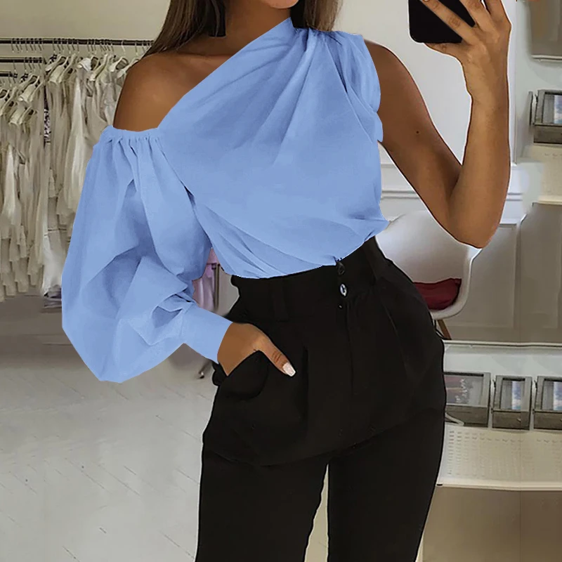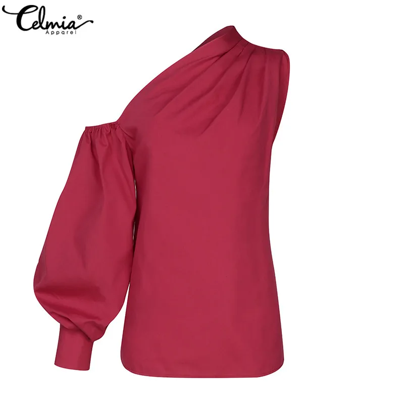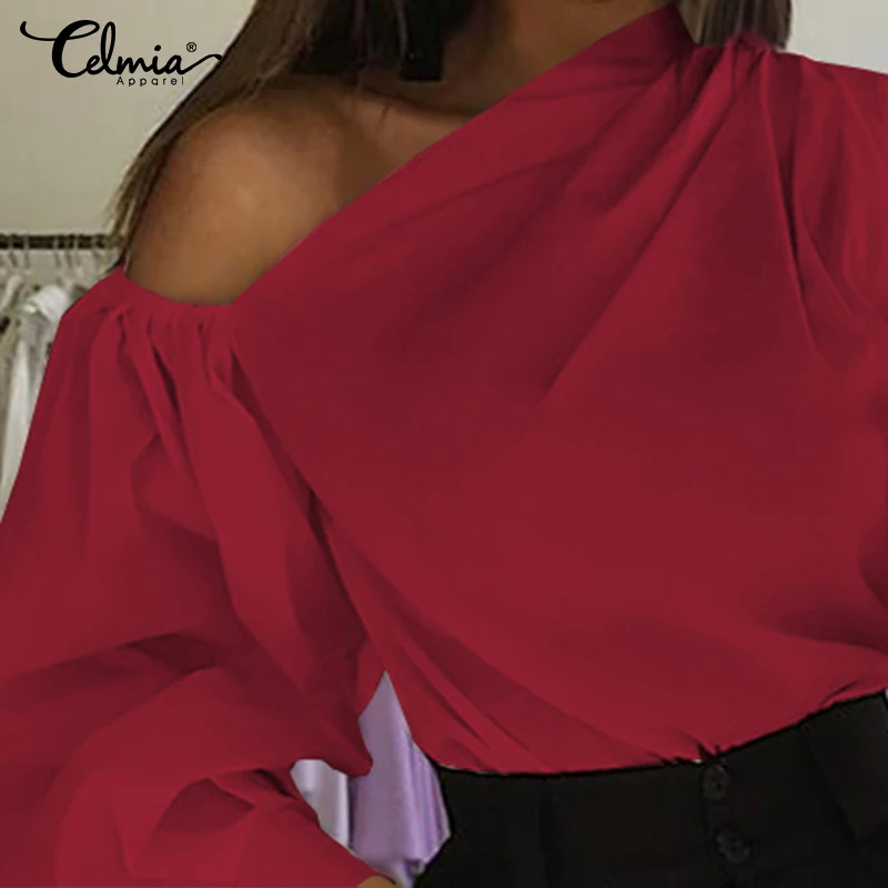 Celmia 2022 Летняя женская рубашка с длинным рукавом, сексуальная однотонная туника с открытыми плечами, модная блузка, повседневный Топ, элегантные женские блузы для вечерние