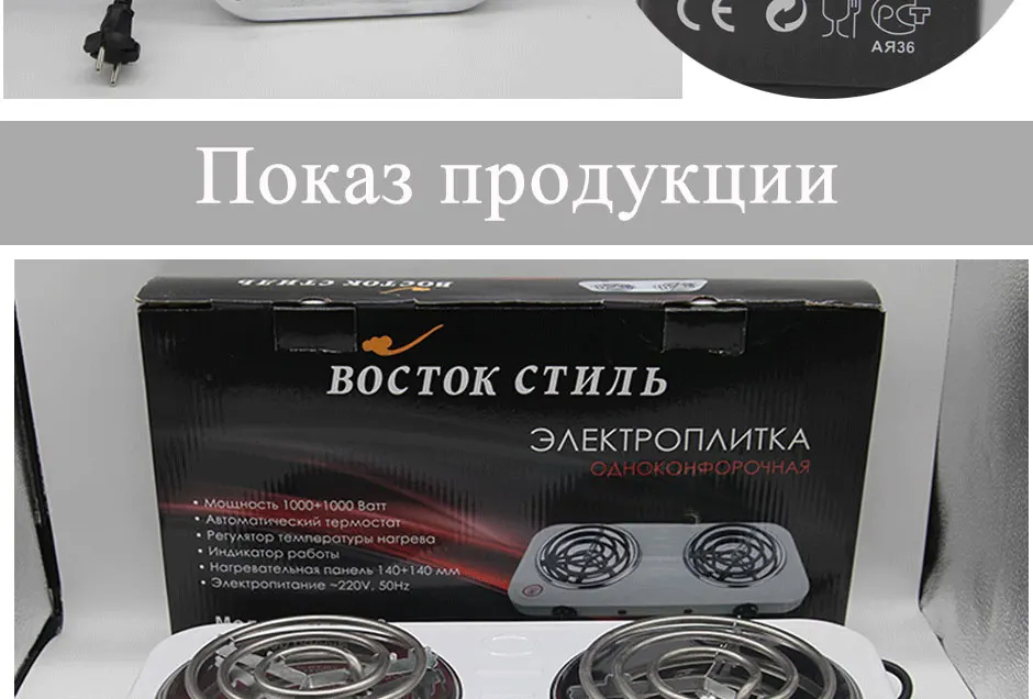 Бытовая электрическая плита Настольная плита Большая домашняя кухонная плита двухпанельная плита 1000W+1000W