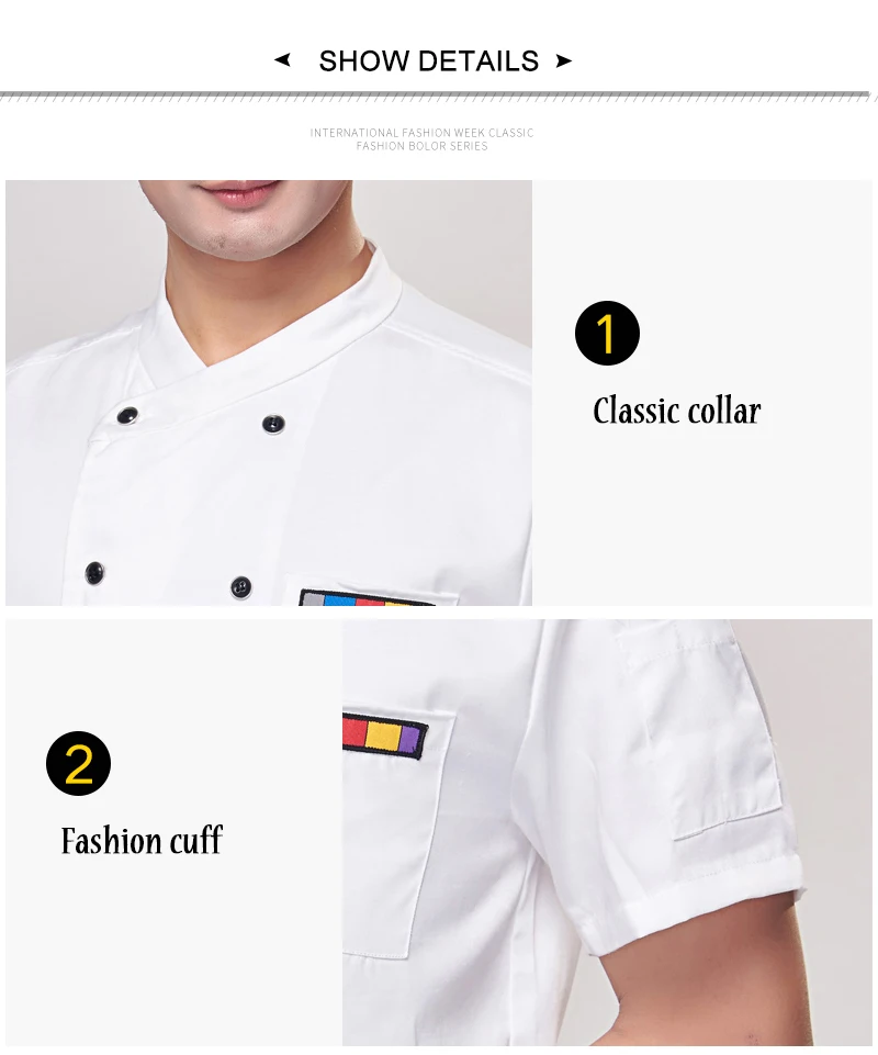 Короткий рукав ресторанного шефа Кухня рабочая одежда двубортный су...