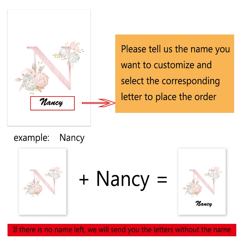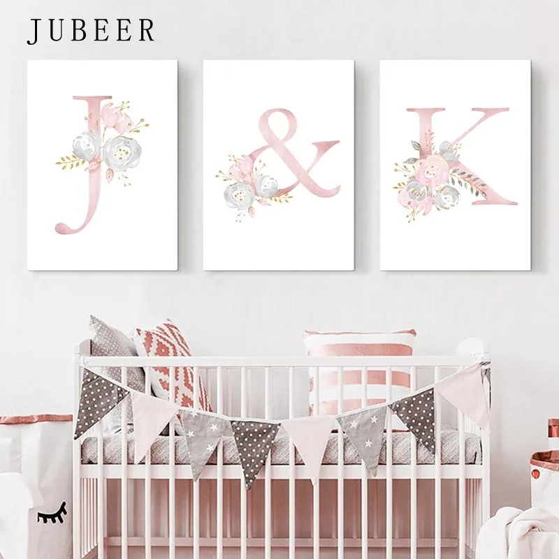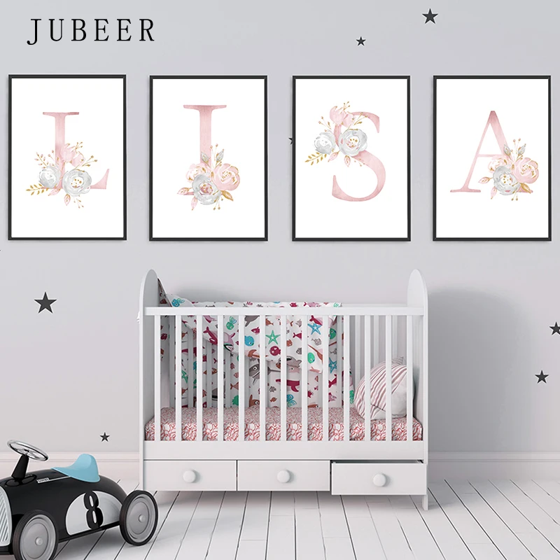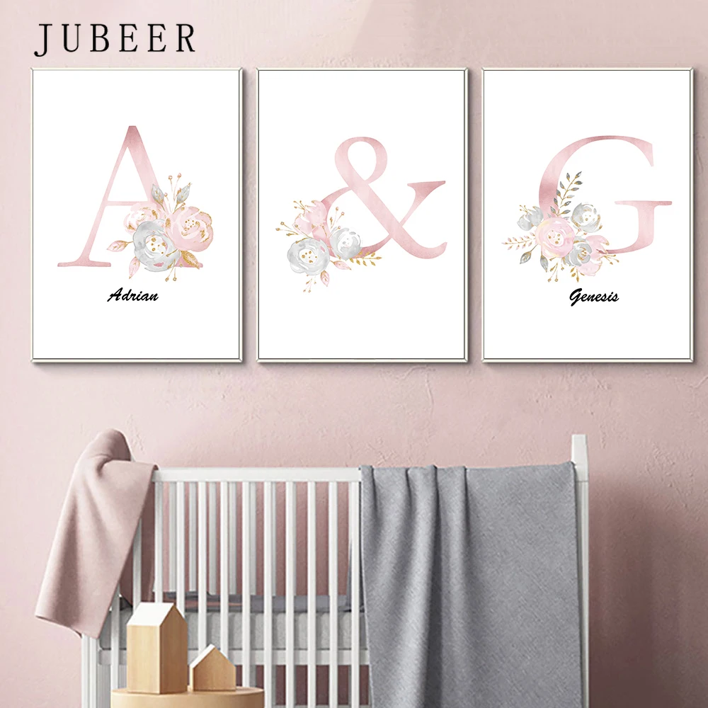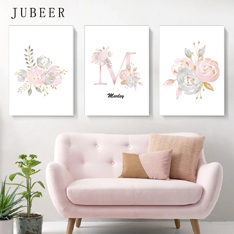 Детские постеры Персонализированные девушки имя на заказ плакат для детской печати розовые цветы стены искусства холст картины для девушки комнаты