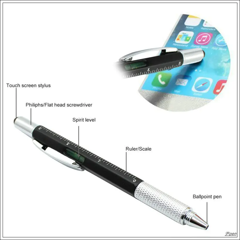 Шариковая ручка, 6 в 1, пластиковая, со спиртовым уровнем ручка-отв...