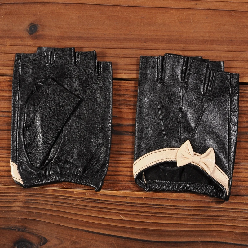 Перчатки женские из козьей кожи, без пальцев, зимние, мягкие, черные