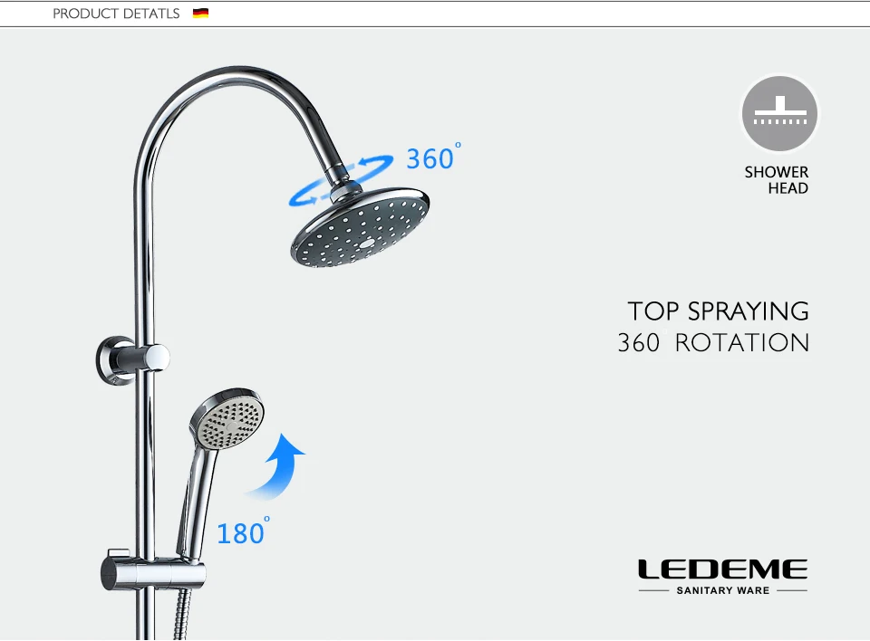 Смеситель для душа LEDEME L2412, кран для ванны с дождевой насадкой, с одной ручкой, L2412