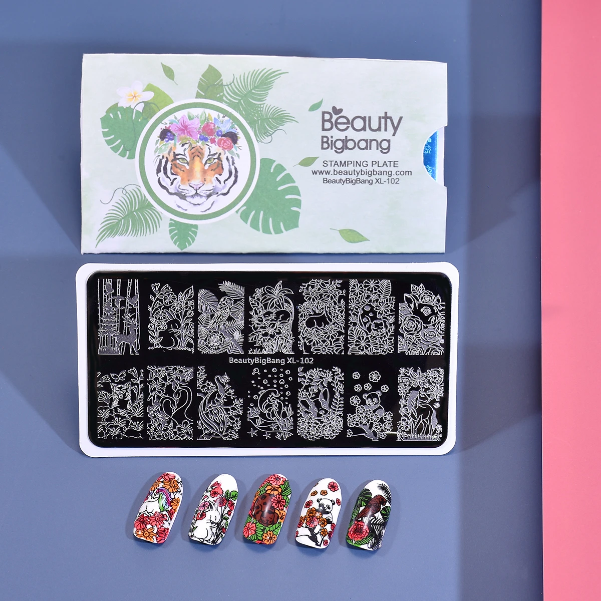 Beauty bigbang 8 шт. набор штамповочных пластин для ногтей животные в полоску кролик натуральный цветок изображение красота Bigbang трафарет для дизайна ногтей шаблон