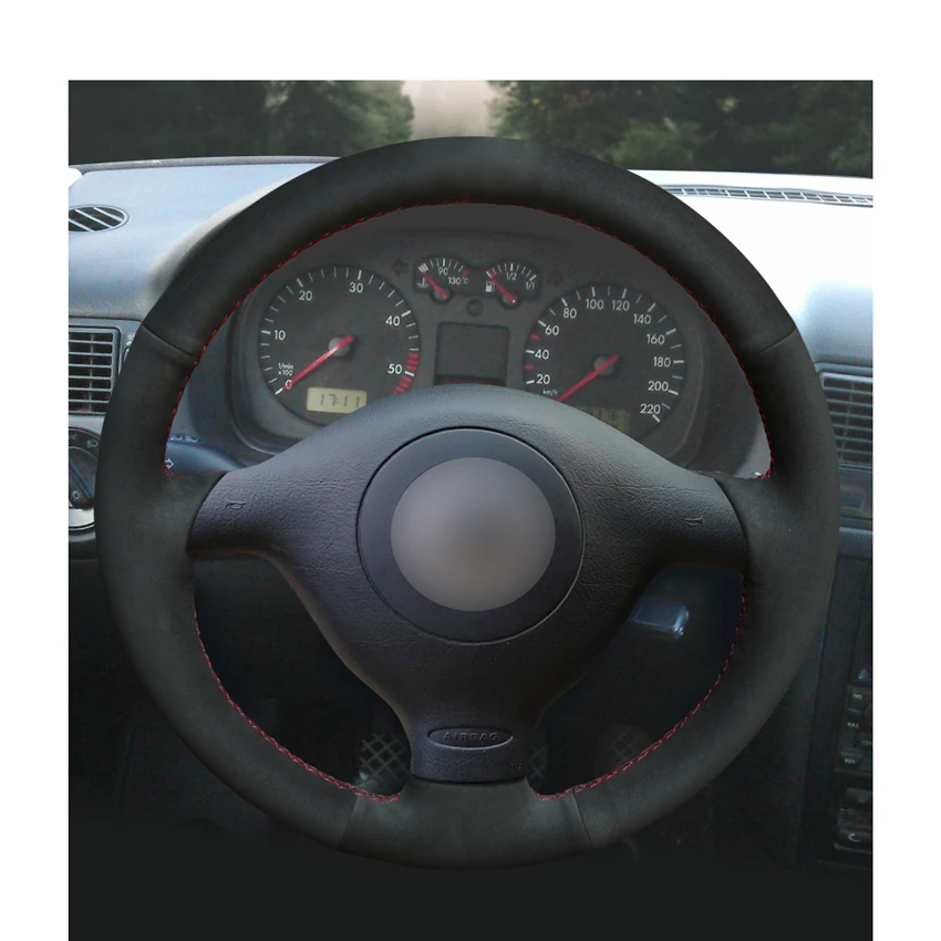 Черный замшевый красный маркер DIY чехол рулевого колеса автомобиля...