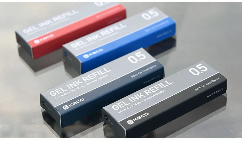 Kaco 10 шт./кор. G2 пополнения чернил Европейский Стандартный 0,5 мм черный, красный голубой темно-синие чернила для заправки зажигалок для выдвижной гелевые ручки канцелярские принадлежности