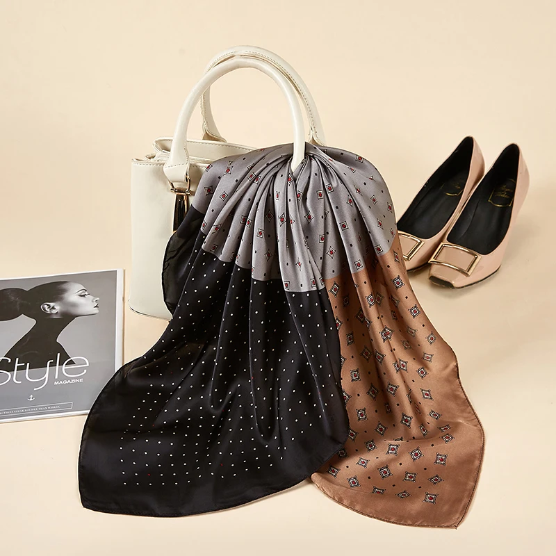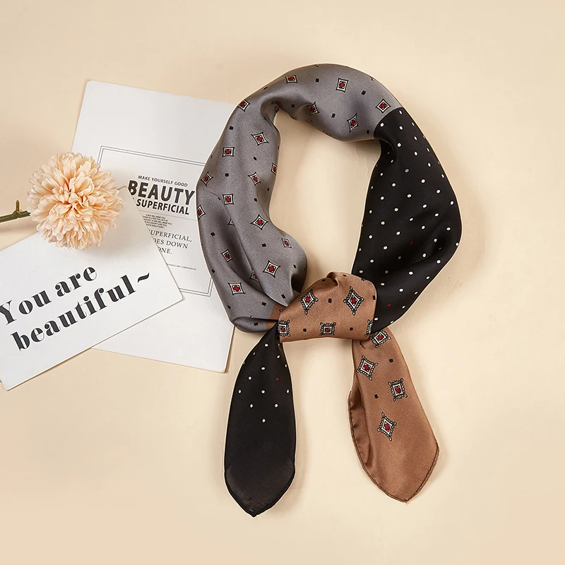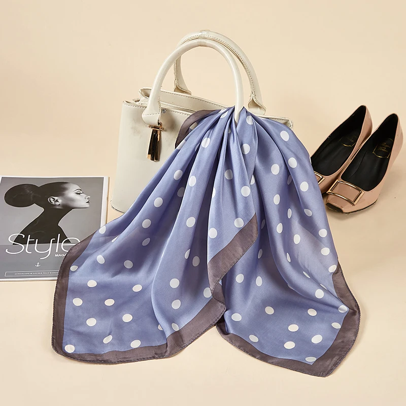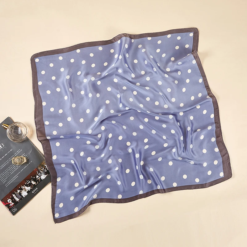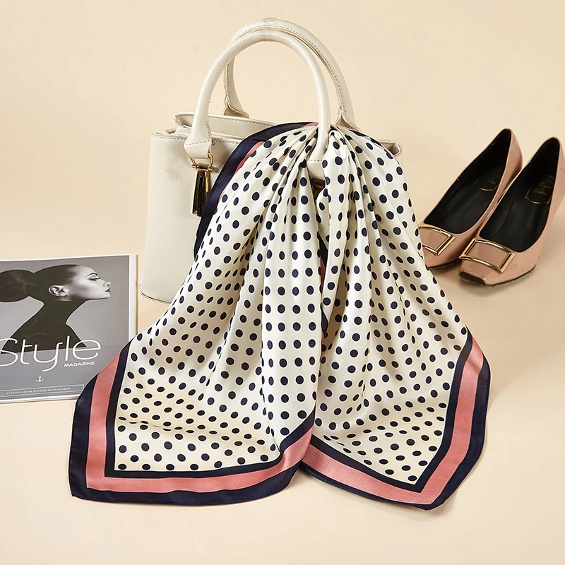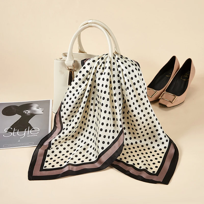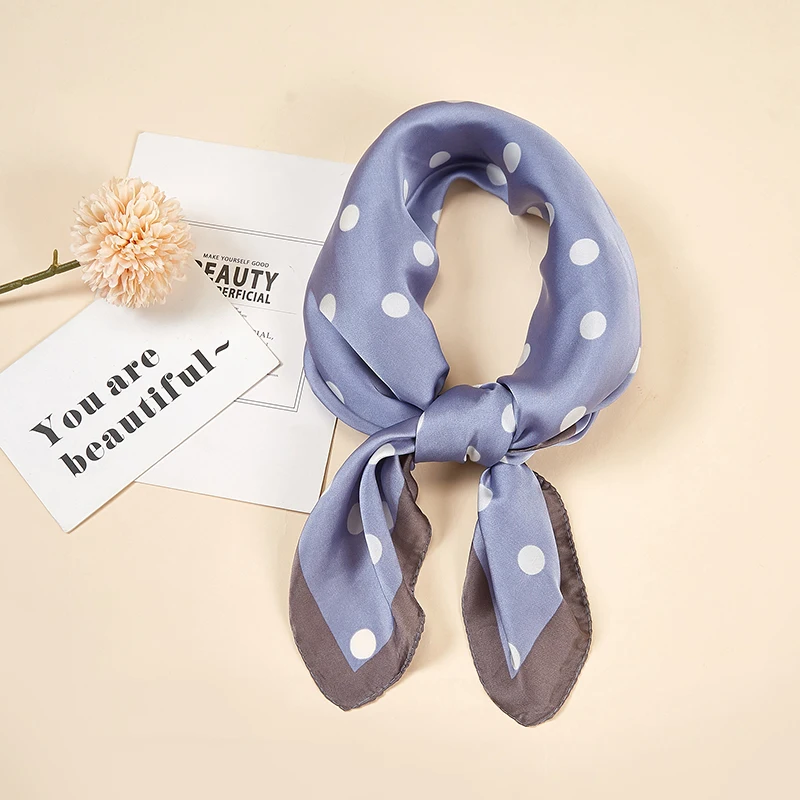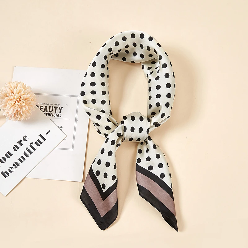 Платок Шелковый женский, маленький квадратный, атласный, с принтом в горошек