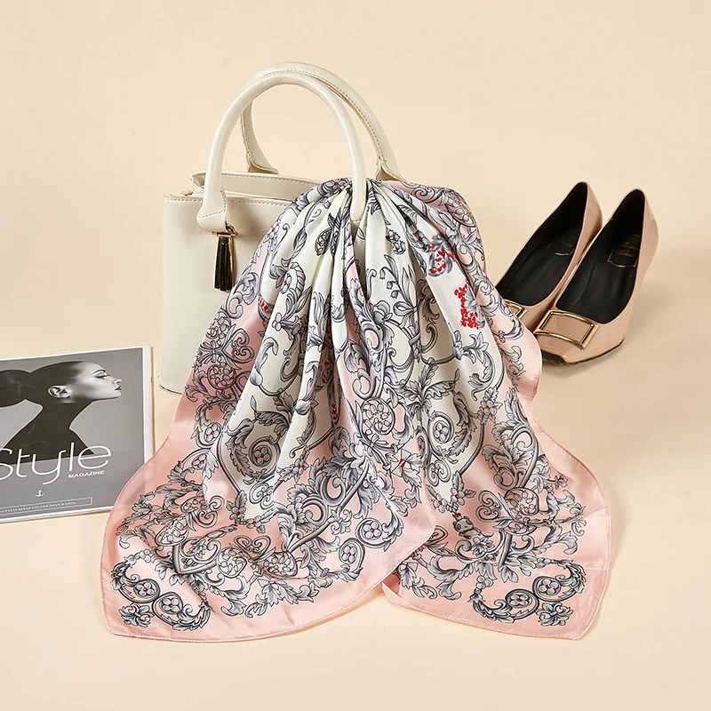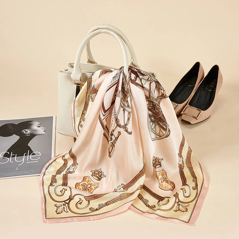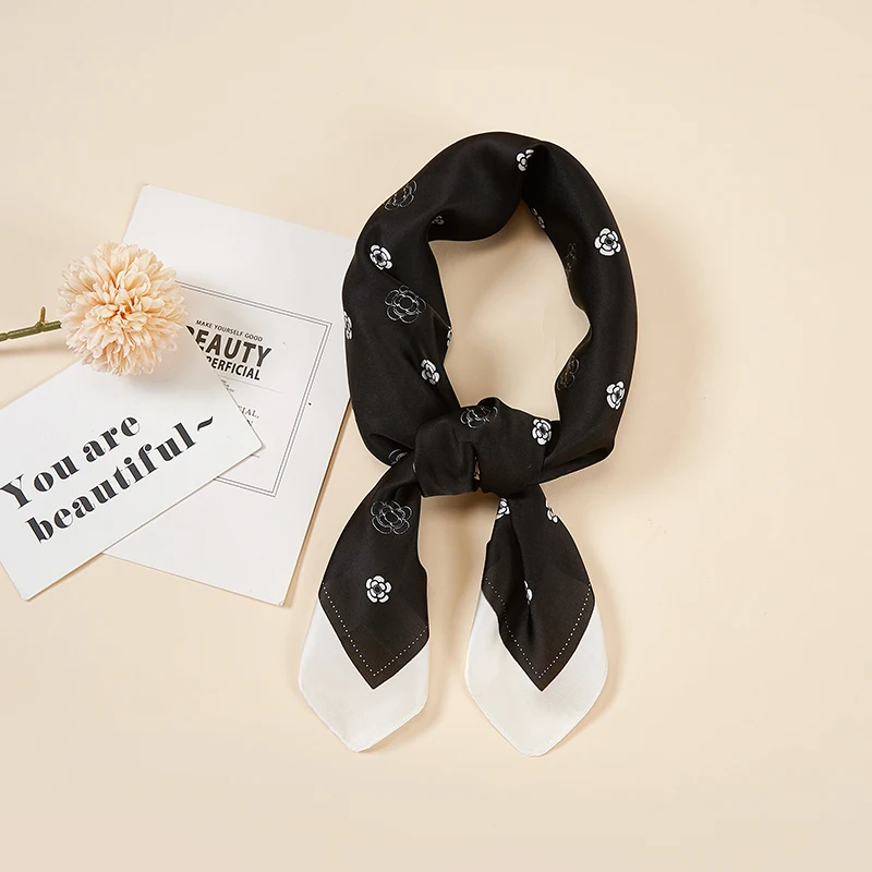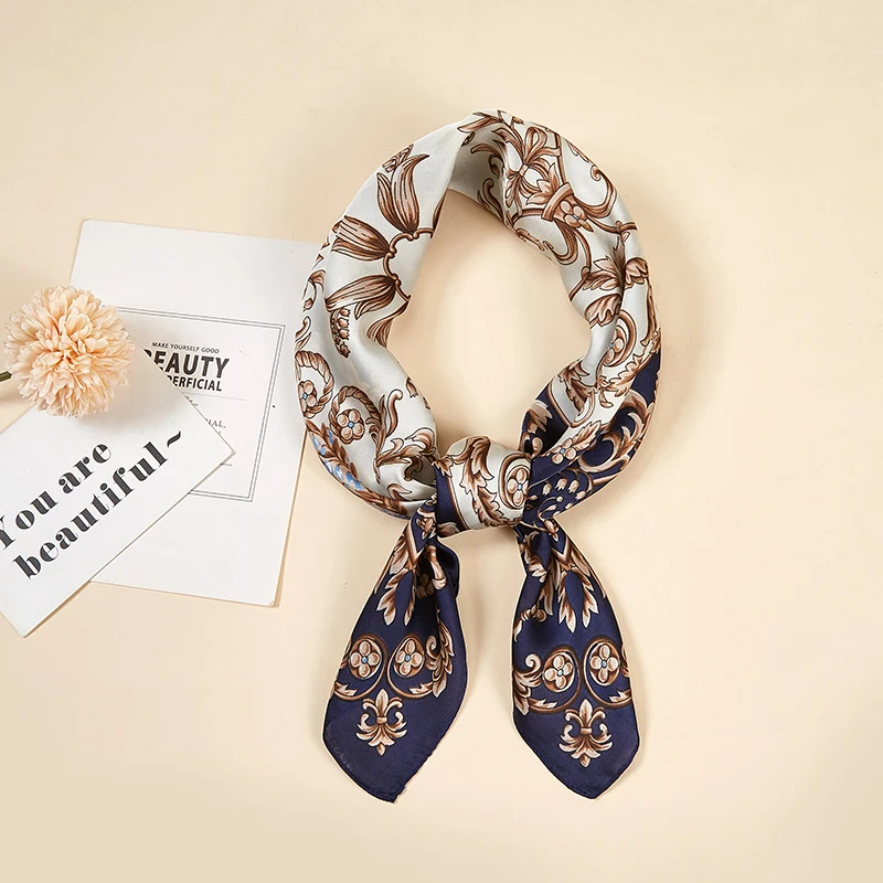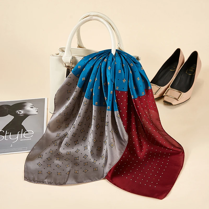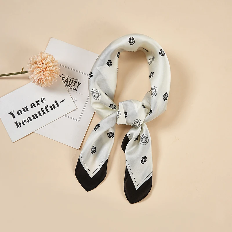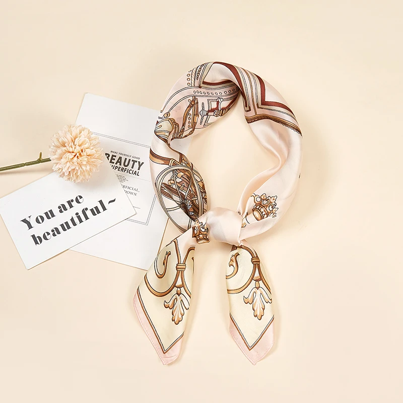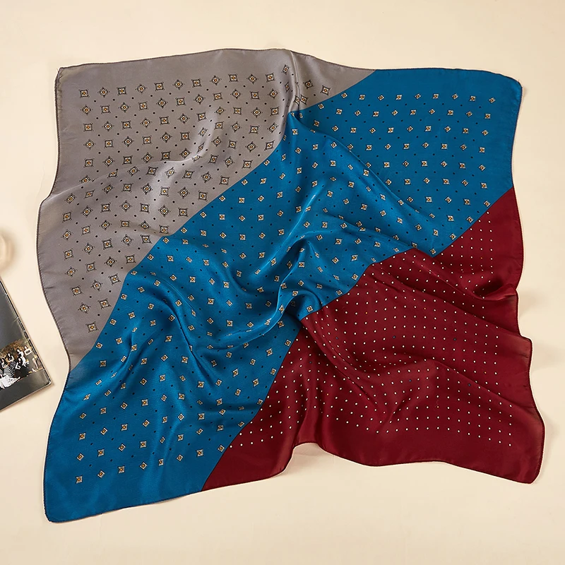 Платок Шелковый женский, маленький квадратный, атласный, с принтом в горошек