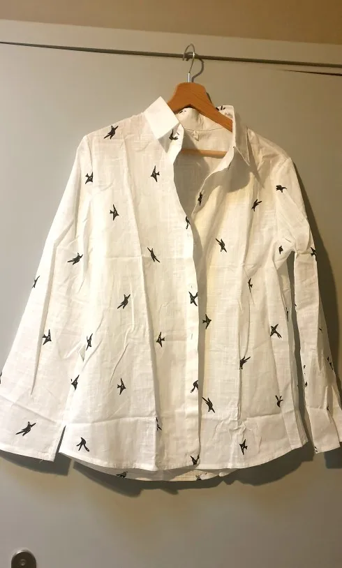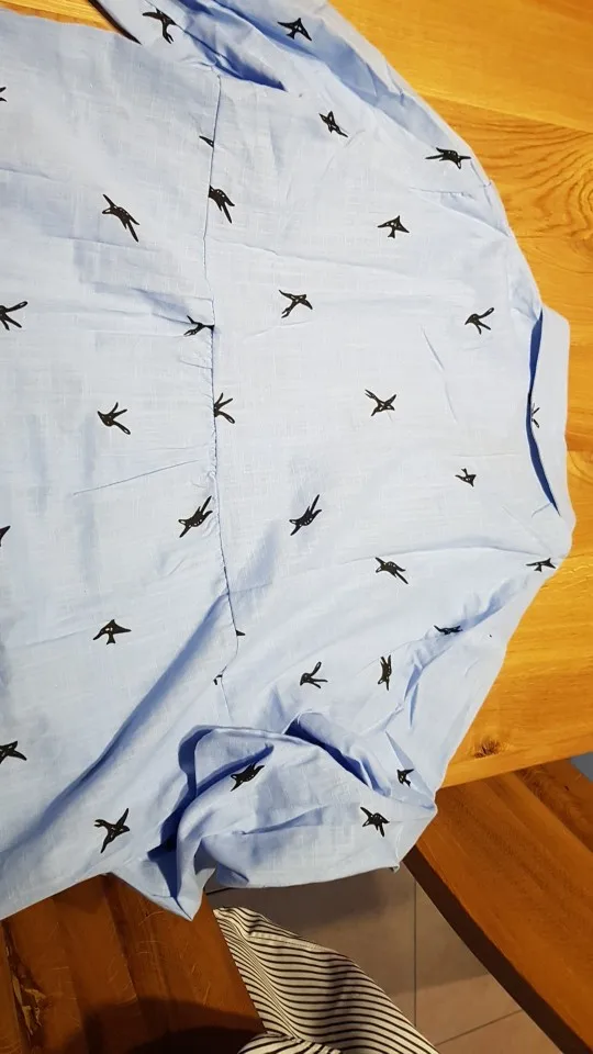 Рубашка пришла быстро, я брала 5xl на свой 54 размер. Единственное, спина не как у рубашки прямая, а отрезая, как для беременных это добавляет объема ниже груди и лопаток.