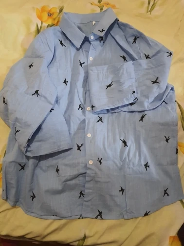 Рубашка очень милая, так как выглядит, у меня есть размер 40 ,42 зависит, и я купил размер L, как на картинке, широкий.