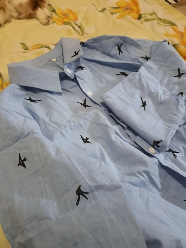 Хорошая лёгкая рубашка. Сидит, как на фото. На мой 46 рус. брала L. Очень довольна. Закажу ещё что нибудь.