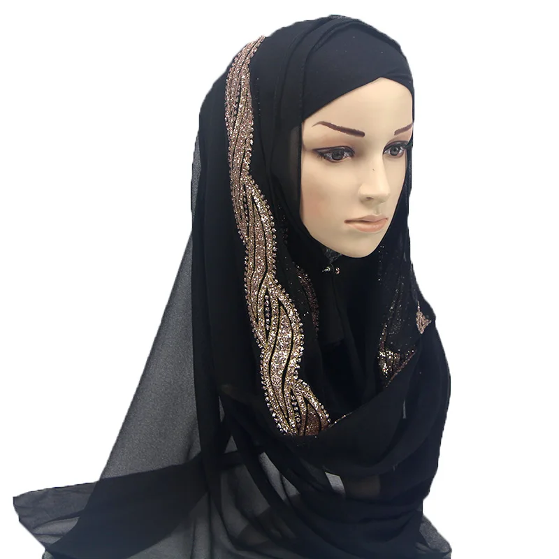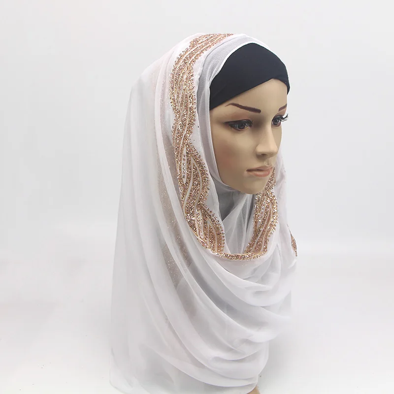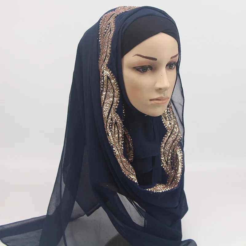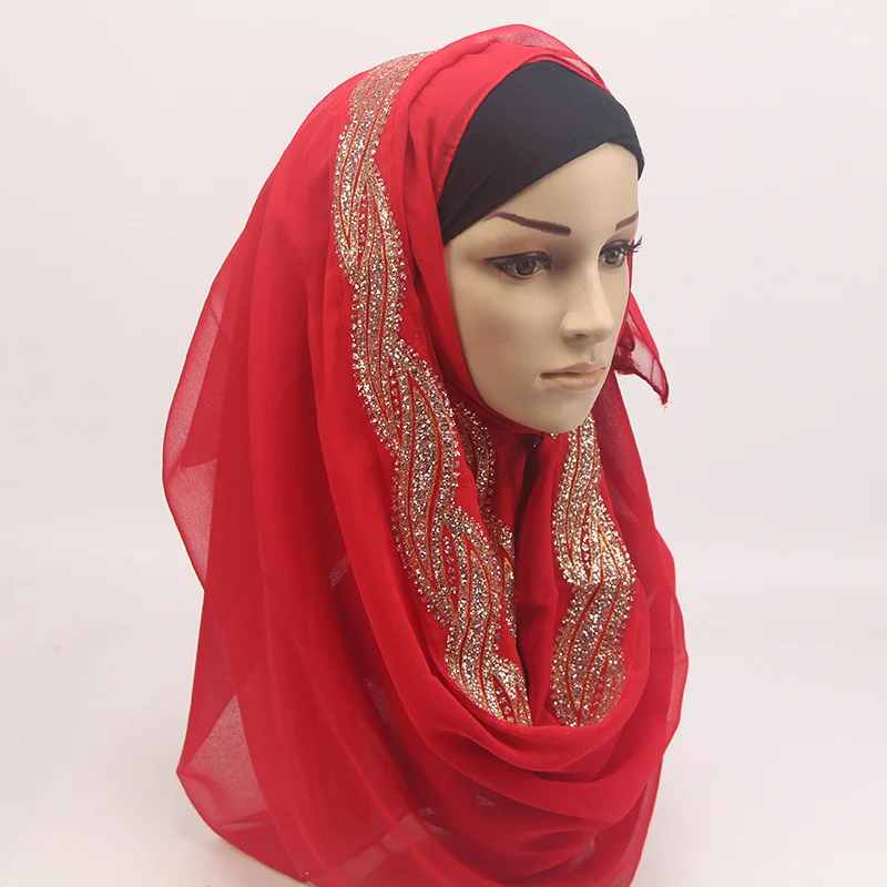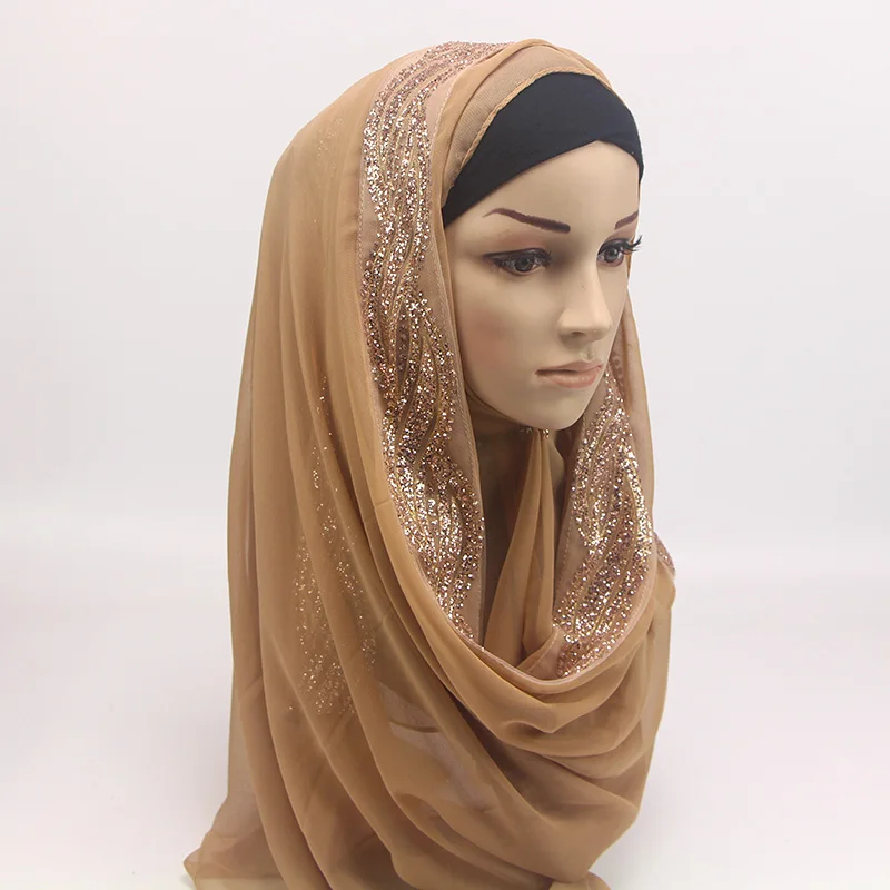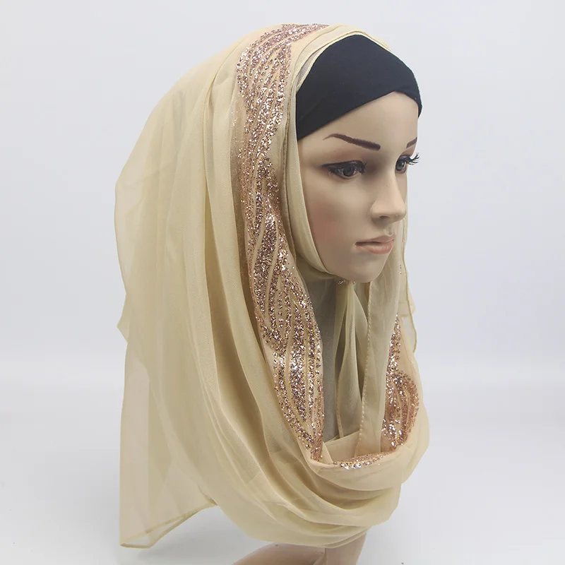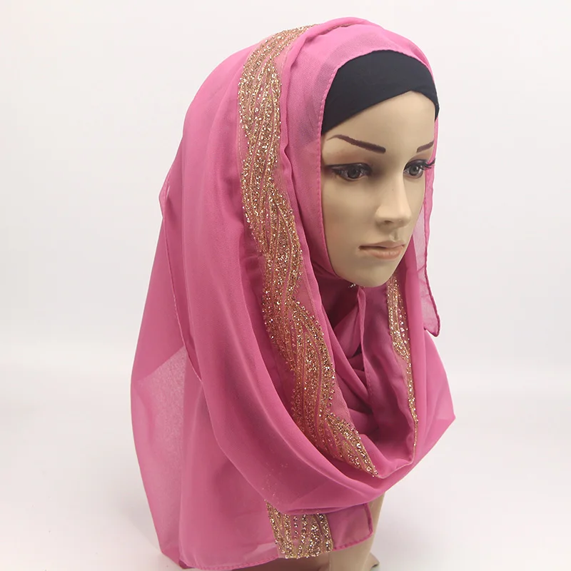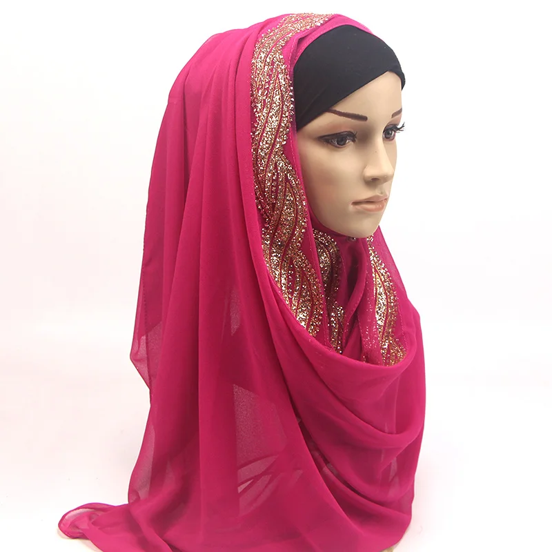 1 шт. женский однотонный Блестящий шифоновый шелк Популярные шали глушитель повязка для головы хиджаб летние мусульманские шарфышарф