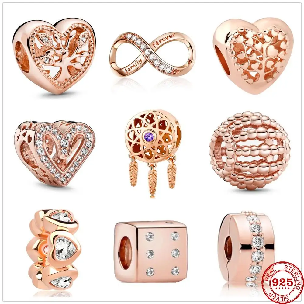 Аутентичные серебряные бусины 925 пробы, очаровательные розовые зол...