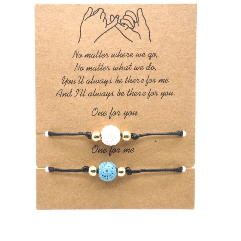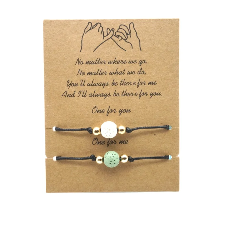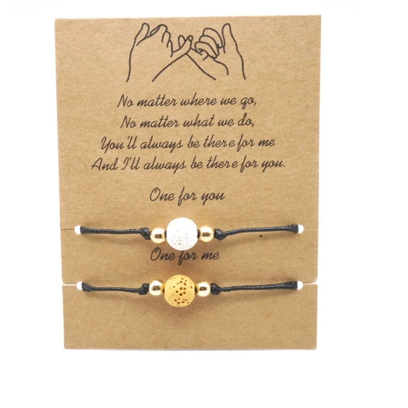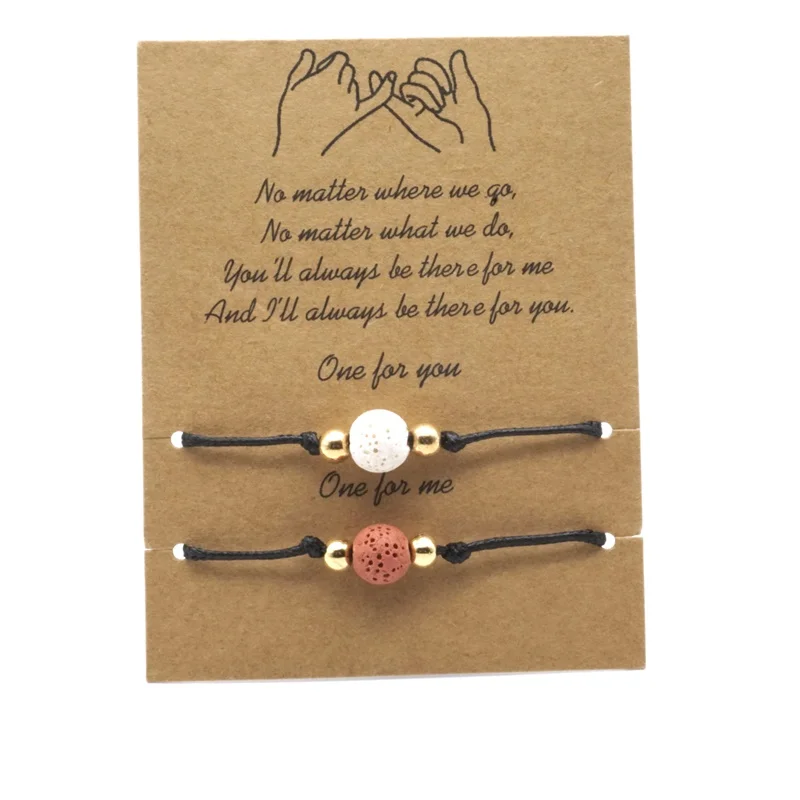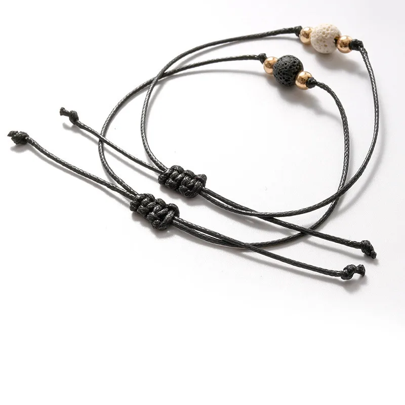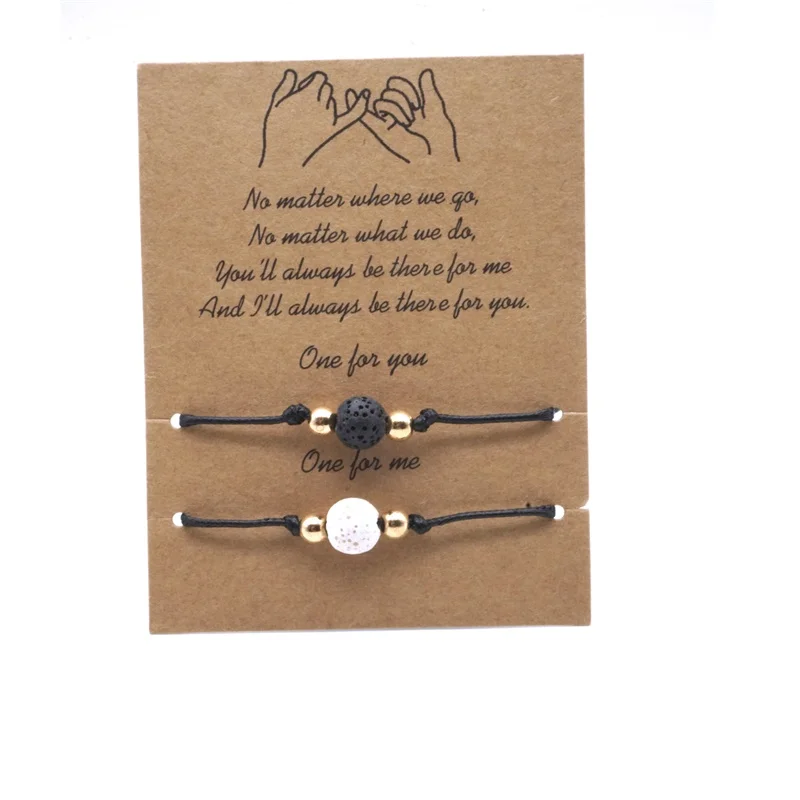 Браслет из лавового камня открытка "пара", разноцветный, черный, белый, регулируемый, с эфирным маслом, подарок ювелирные изделия с диффузором