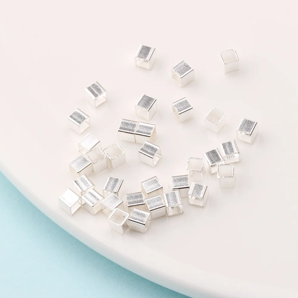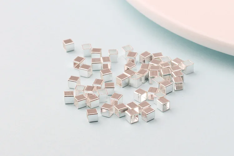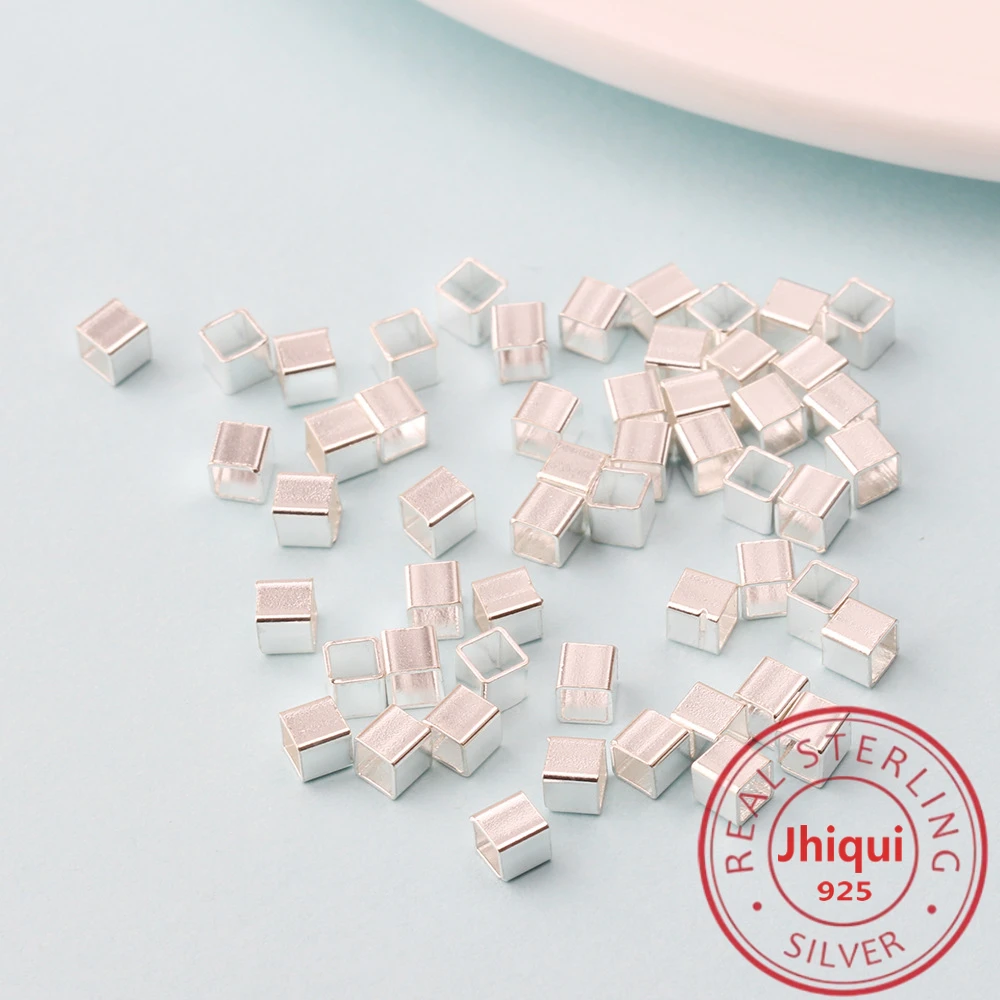 8 шт. 925 пробы серебряные обжимные и концевые бусины кубические бусины-спейсеры для самостоятельного изготовления ювелирных изделий