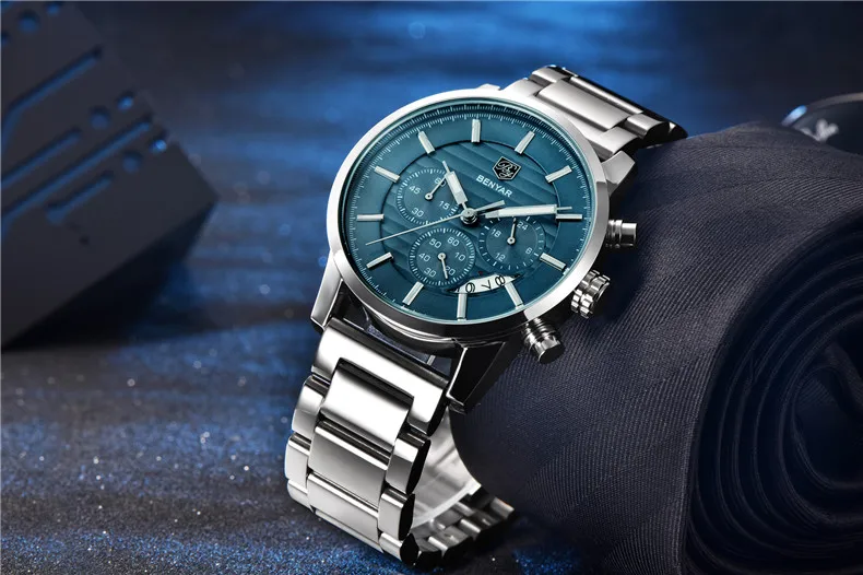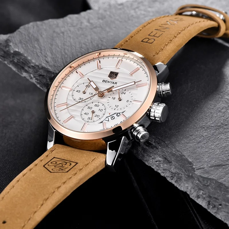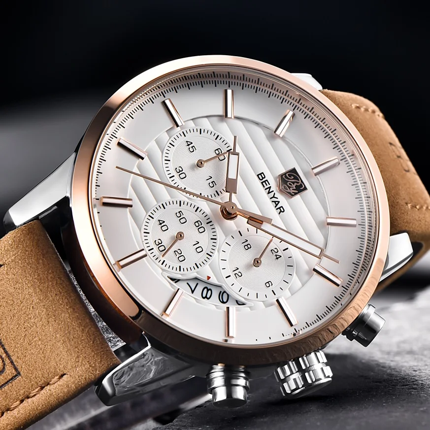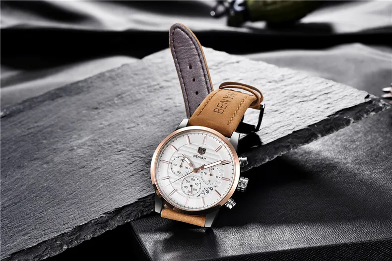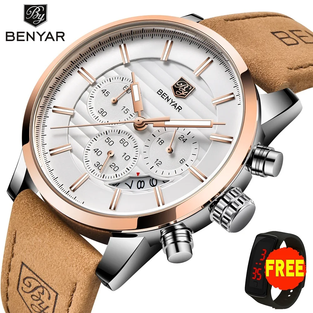 BENYAR оригинальные новые повседневные Модные мужские кварцевые часы, Роскошные военные часы с кожаным ремешком, мужские часы Chronogr aph, мужские часы 5104