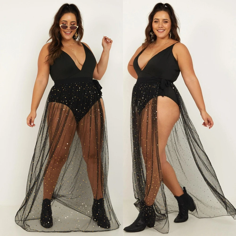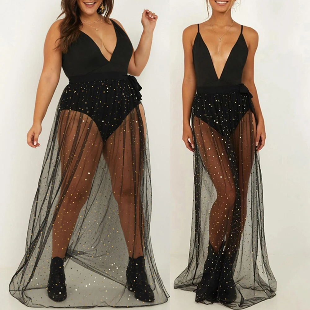 2020 летнее сексуальное пляжное платье с принтом ups платья черные прозрачные плавки cover Up купальник шифоновые юбки размера плюс, женские бикини обертывания