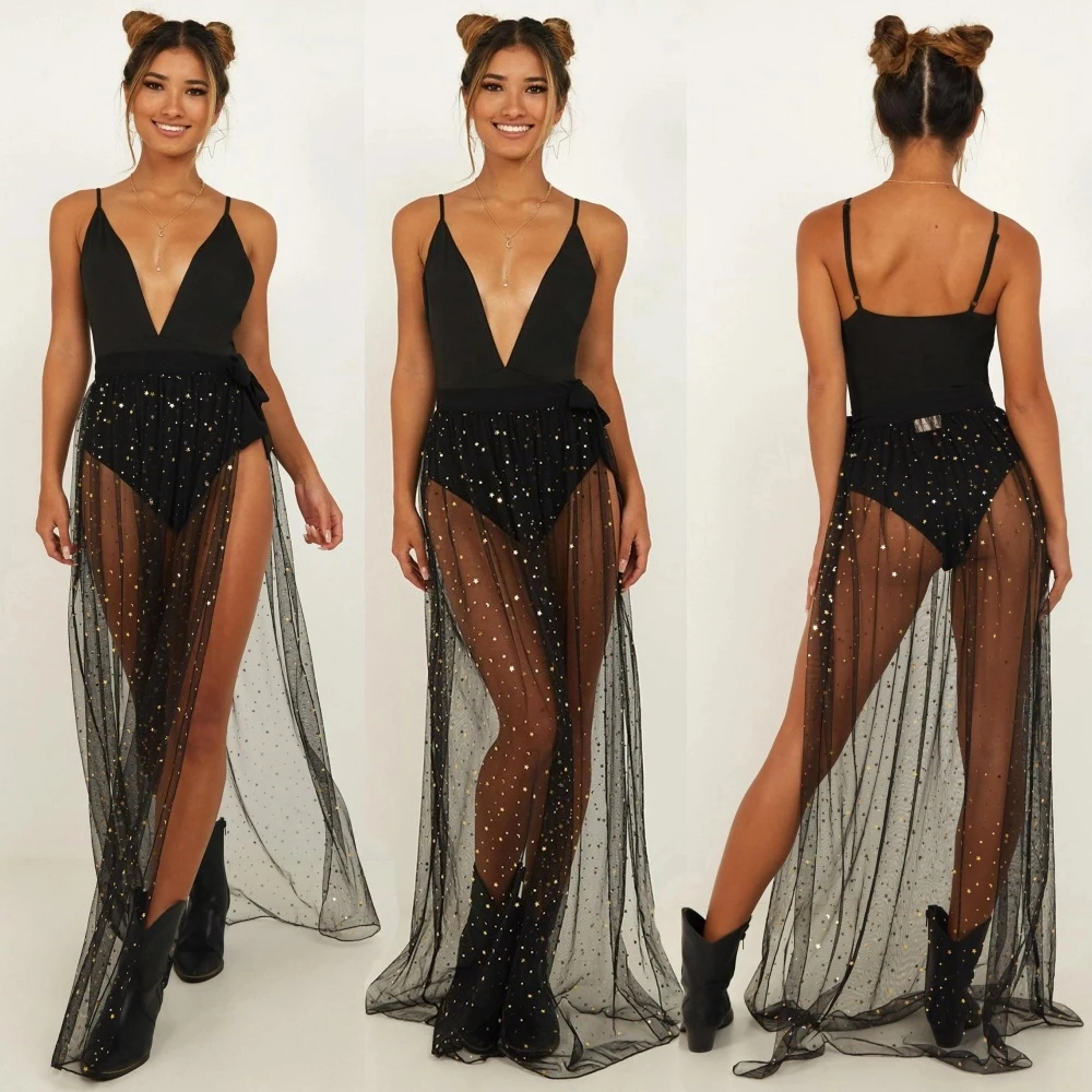 Блестящая женская накидка на бикини с блестками, женская прозрачная...