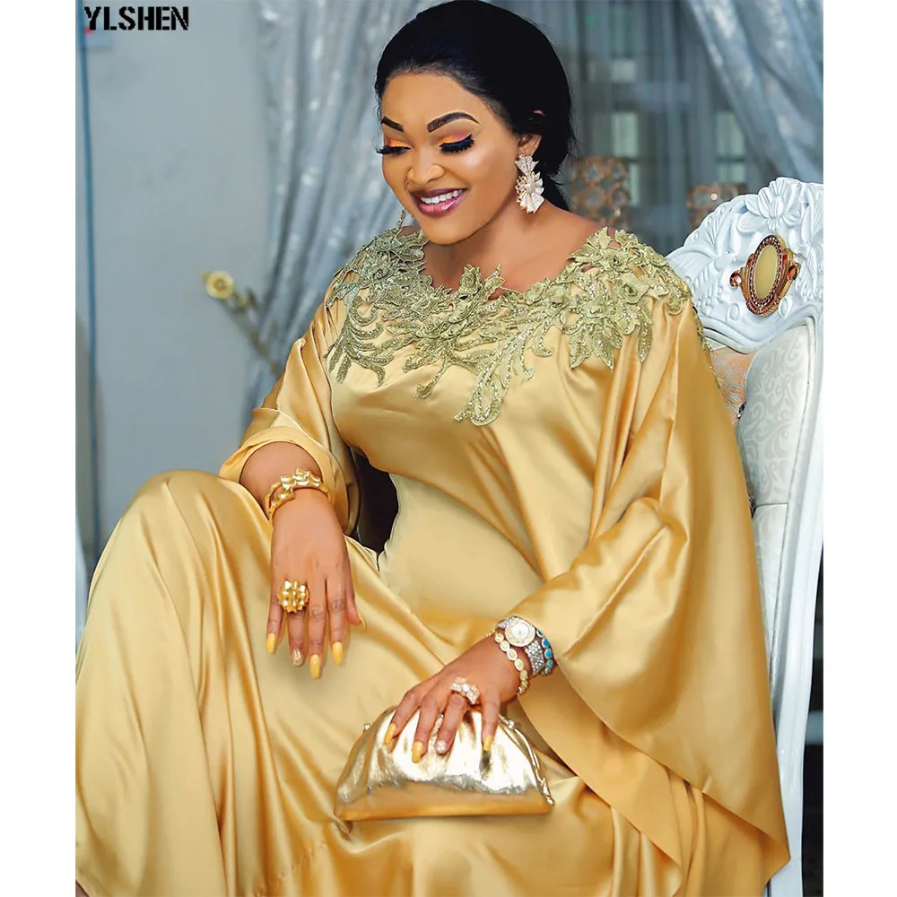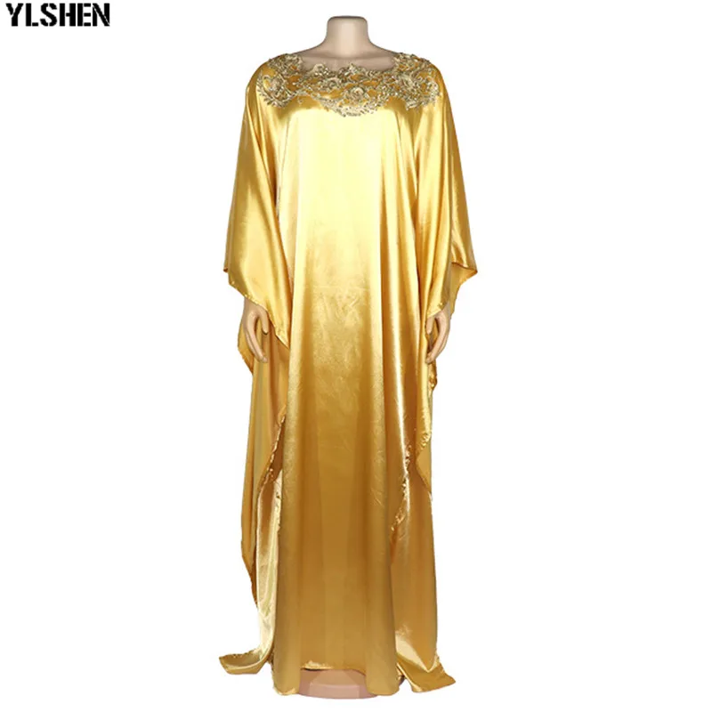 Африканские платья для женщин большого размера, традиционное атласное платье Дашики со стразами, африканская одежда, абайя, Дубай, мусульманское платье, Африканский Халат