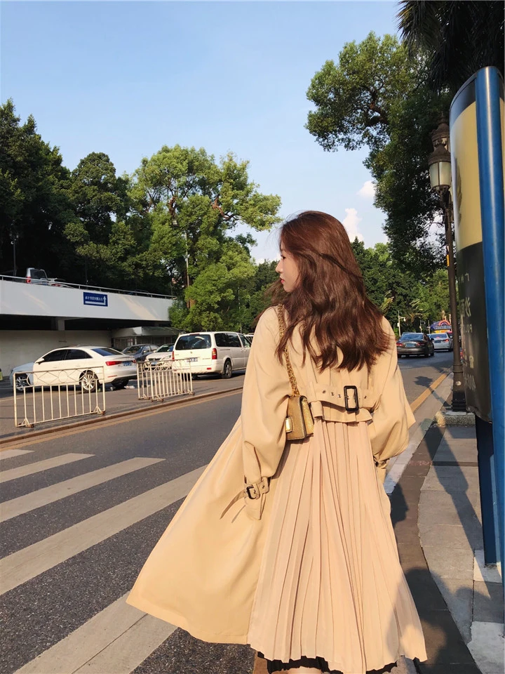 Женский Длинный плащ FTLZZ, весенние пальто, женская модная плиссир...