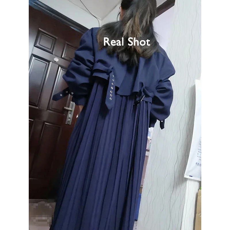 Тренчкот женский шифоновый плиссированный, модное Свободное пальто с разрезом, элегантная верхняя одежда, большие размеры, весна-лето 2021