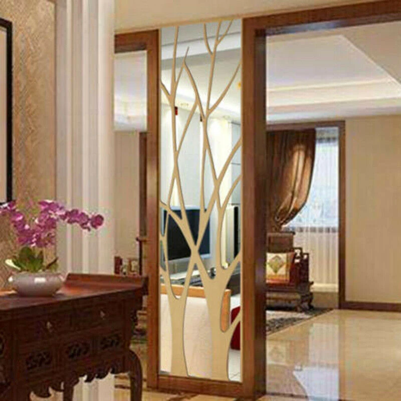3D акриловое дерево зеркальные настенные Стикеры съемные DIY художественная наклейка Домашний декор росписи 100X28CM