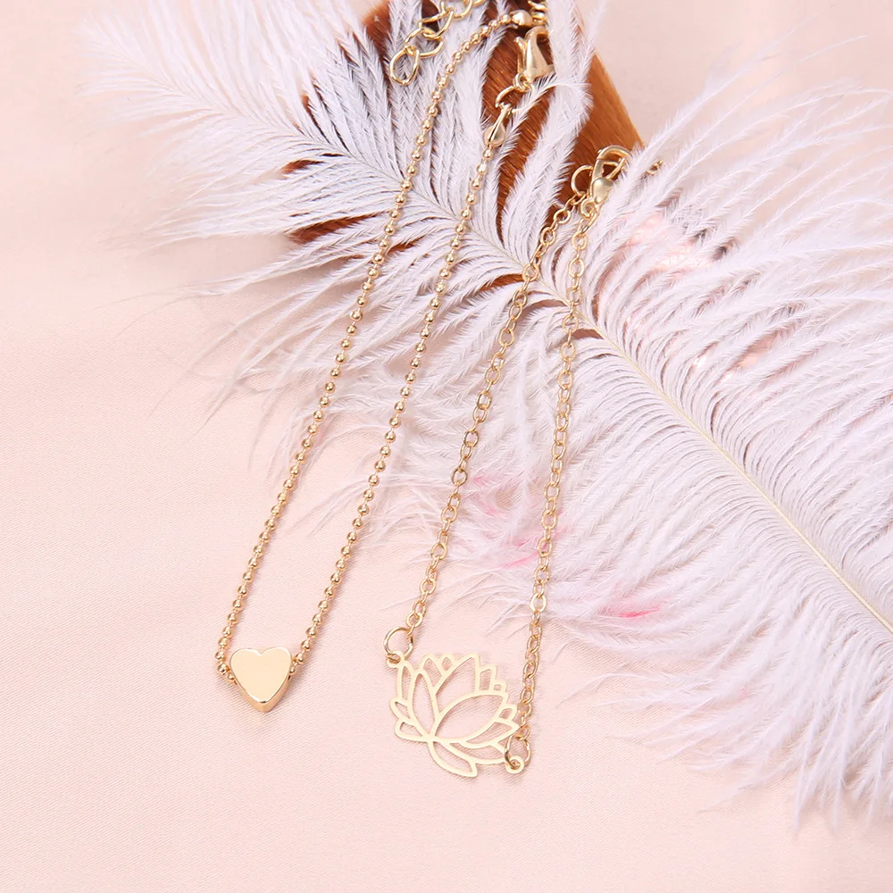 Новый простой женский браслет с полым лотосом, 2 шт.компл., золотой браслет, рождественский подарок для женщин, Классические трендовые украшения