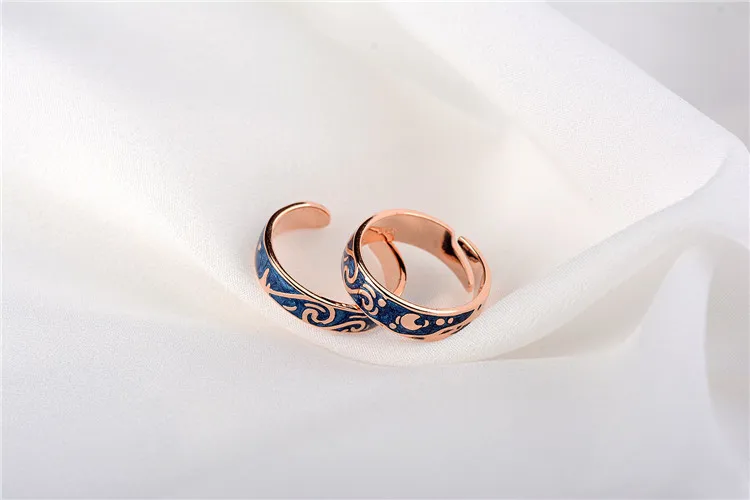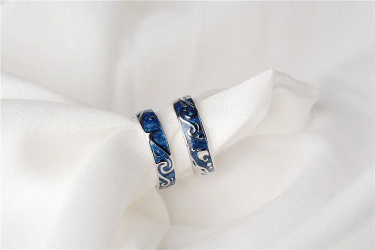 Новые европейские Стильные креативные парные кольца с изображением Ван Гога и звезд из стерлингового серебра 925 пробы, открытые кольца с изображением Луны синего цвета SR535