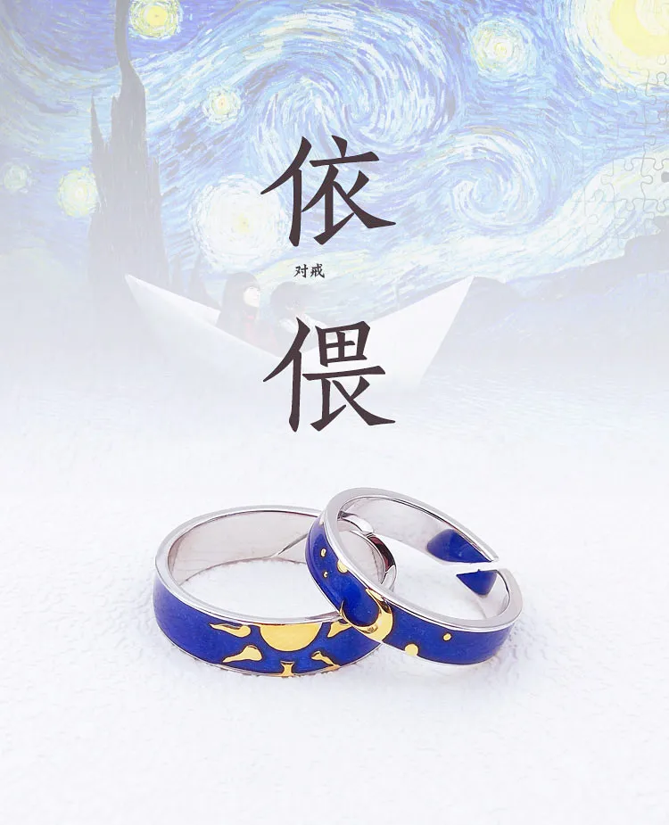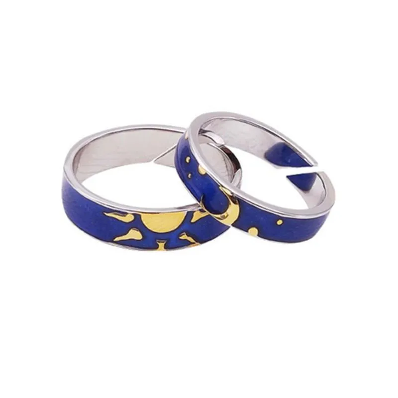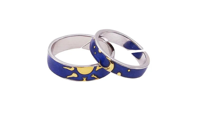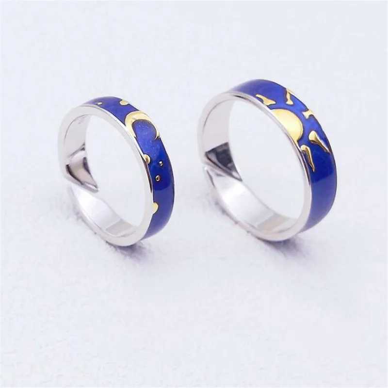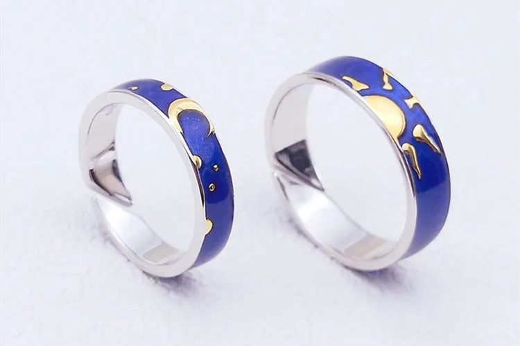 Новые Красивые думая о ночи пара 925 стерлингового серебра покрытая Мода Луна и солнце синий Ван Гог Открытие Кольца SR541