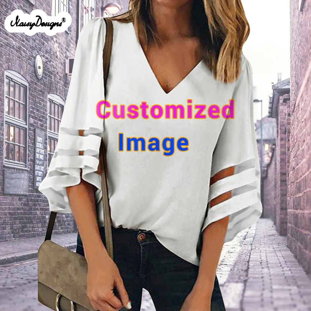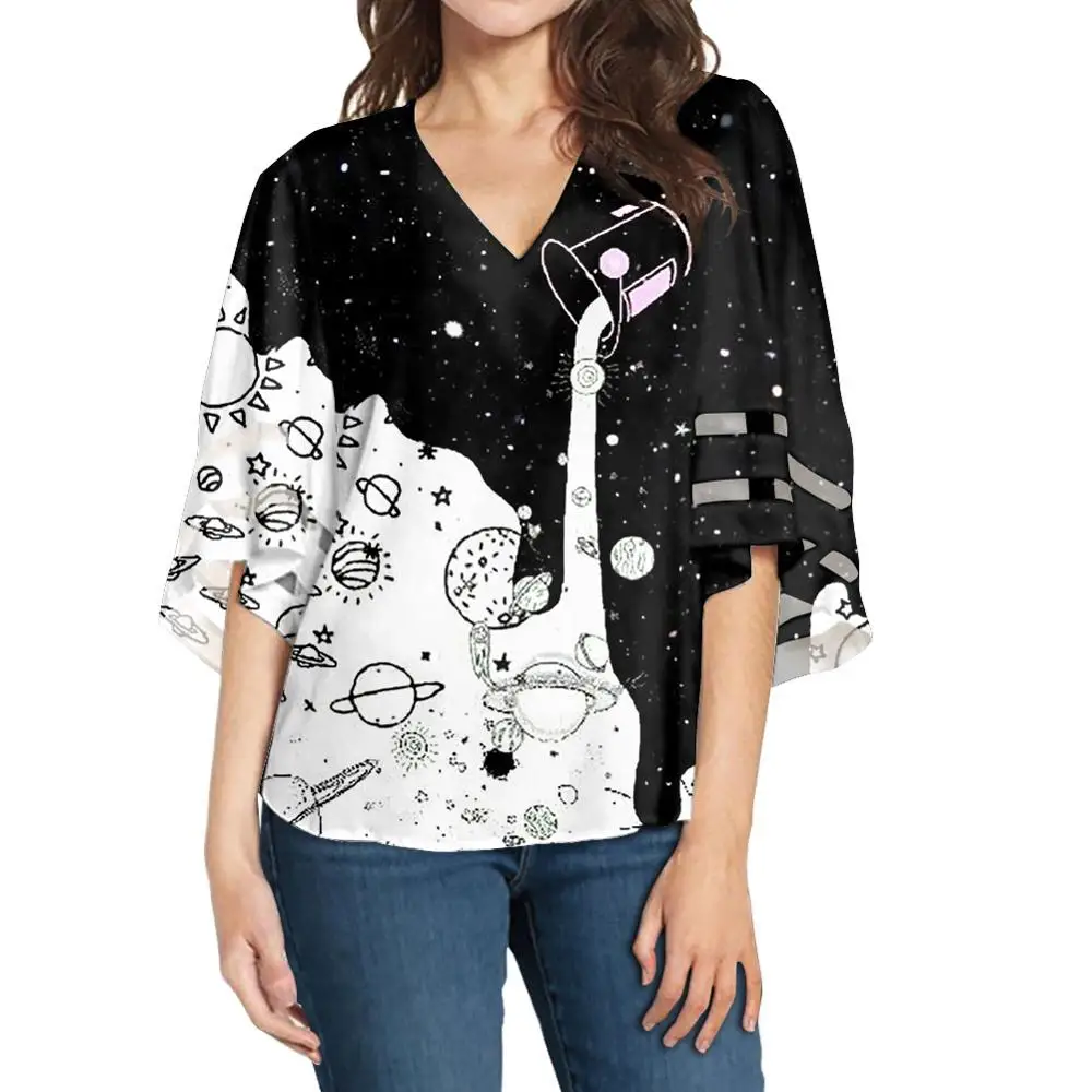 Noisydesigns2022 Летняя женская блузка, туника, женские шифоновые топы с v-образным вырезом и принтом молока, рубашки для девочек, Mujer, Прямая поставка, оптовая продажа, 4xl