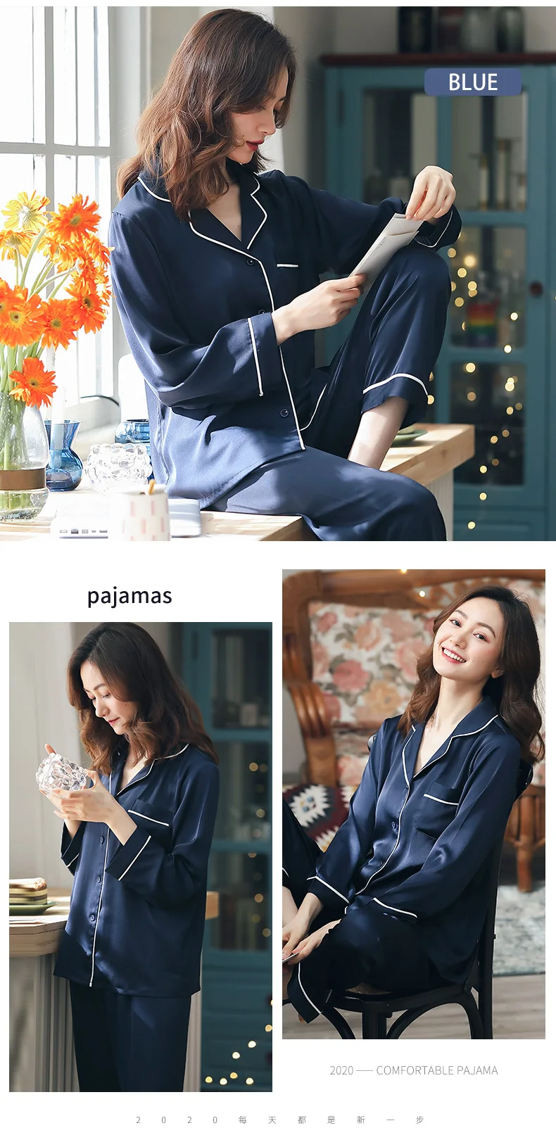 Летняя атласная пижама, женская пижама, домашняя одежда, пижама с длинным рукавом, костюм, розовая ночная одежда, ледяная шелковая белая Пижама для женщин