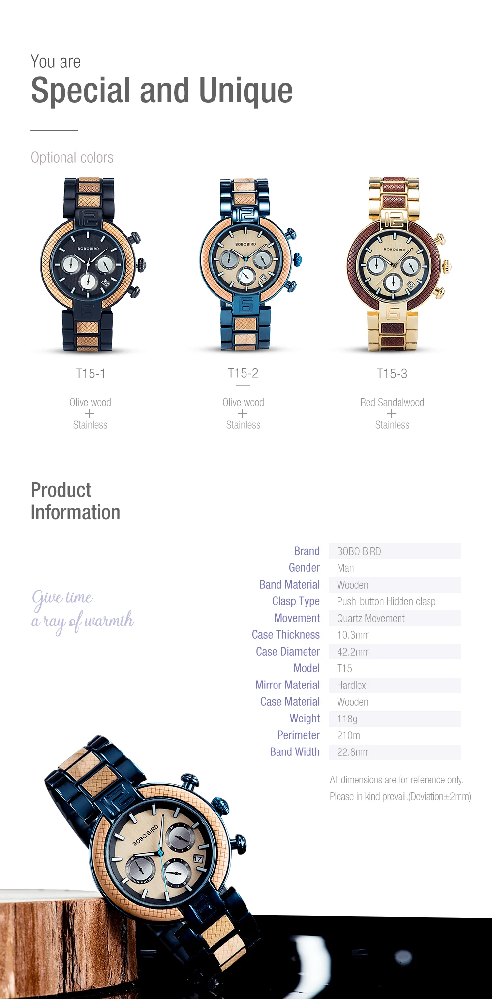 Часы мужские из дерева и нержавеющей стали, с датой, orologio uomo 2020 BOBOBIRD, в подарок, дропшиппинг J-T15