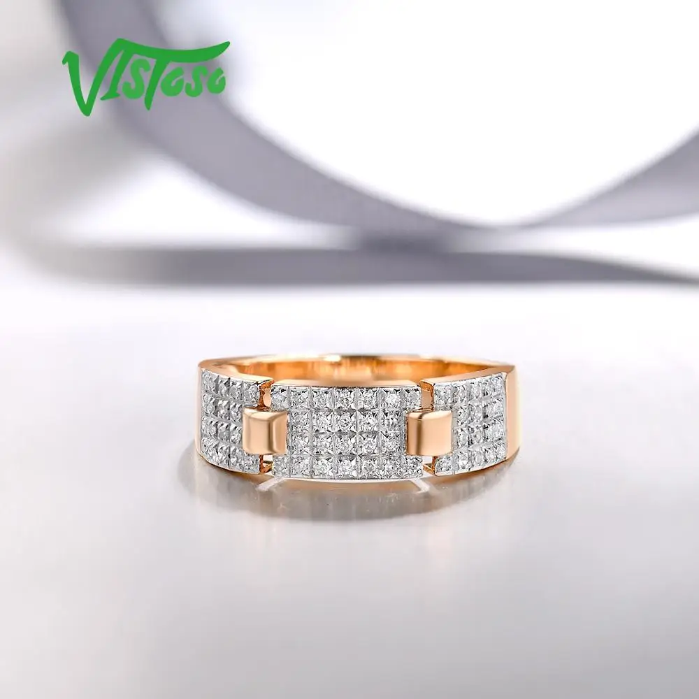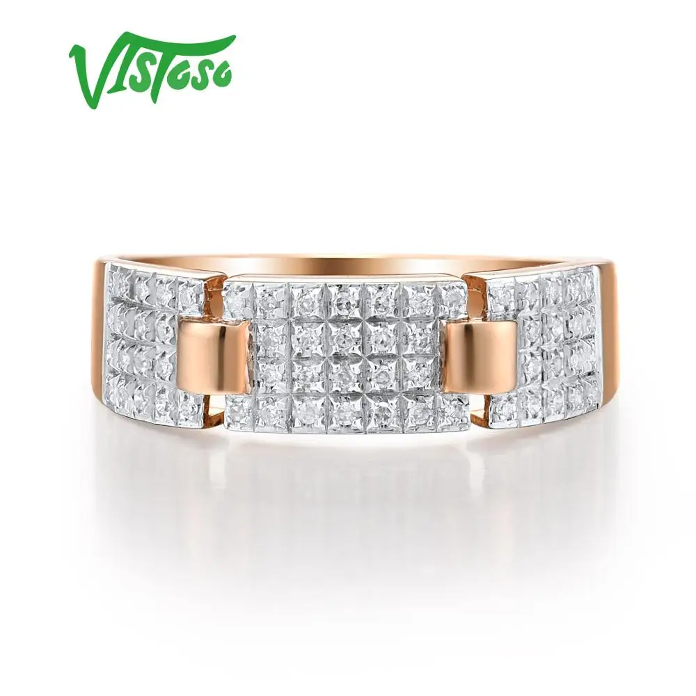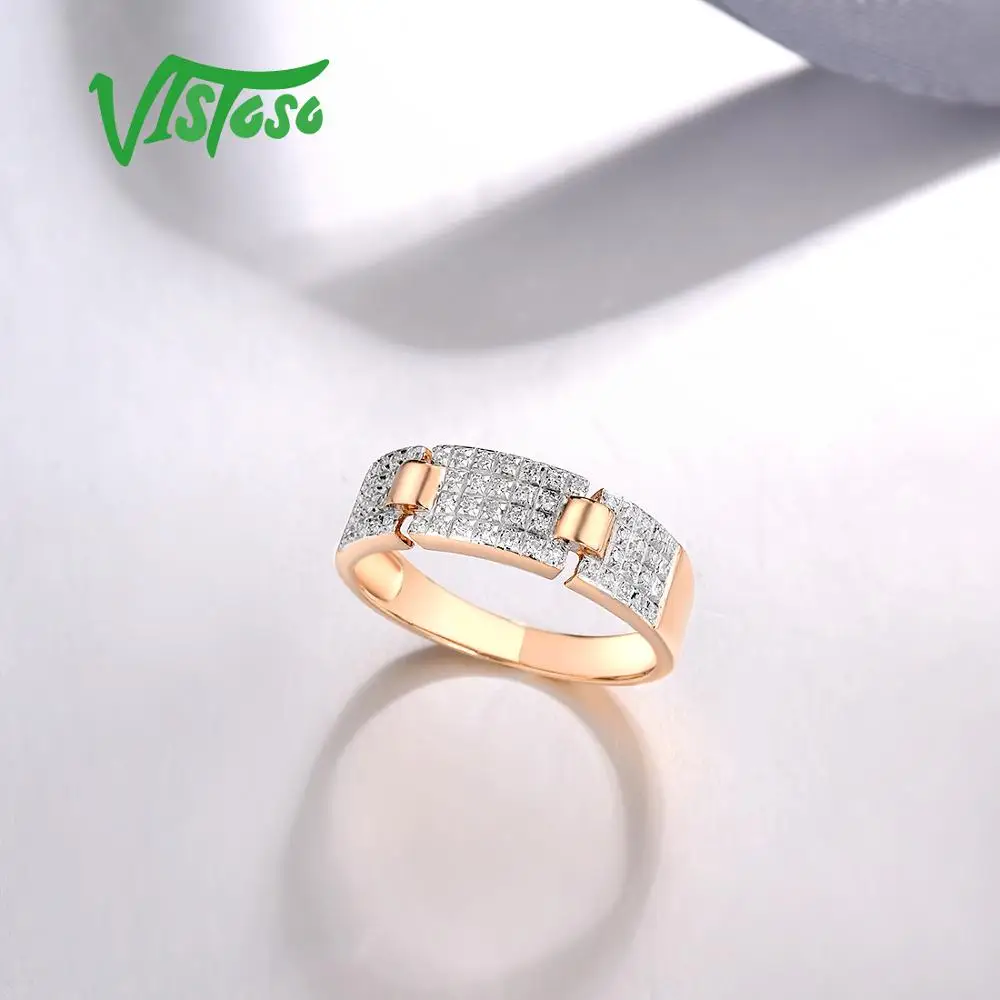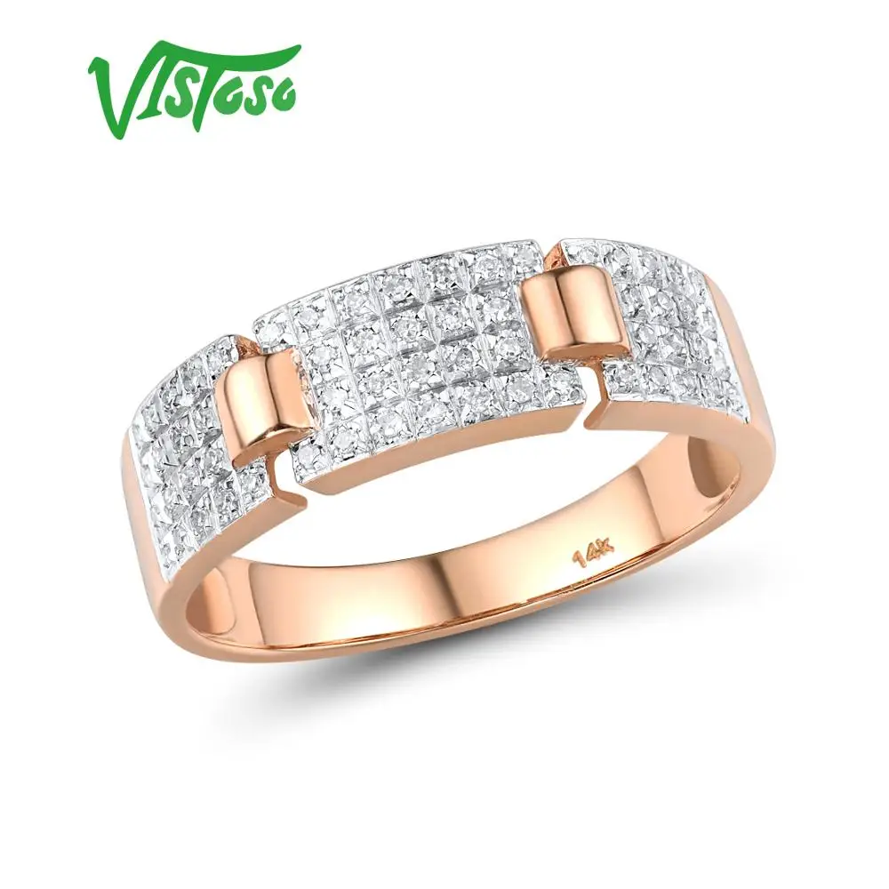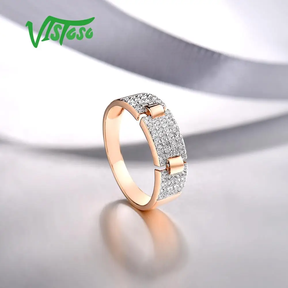 Женские золотые кольца VISTOSO, обручальные кольца из розового золота 14 к 585 пробы со сверкающими бриллиантами, ювелирные украшения для годовщины