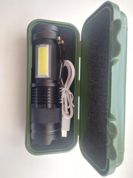 Отличный фонарик за свои деньги, светит очень ярко, с зумом, боковая подсветка тоже очень яркая. Единственное думал он побольше, но возможно маленький даже удобнее. Зарядка микро usb. Продавец отправил быстро, но шло долго, почти полтора месяца, возможно из за новогодних праздников