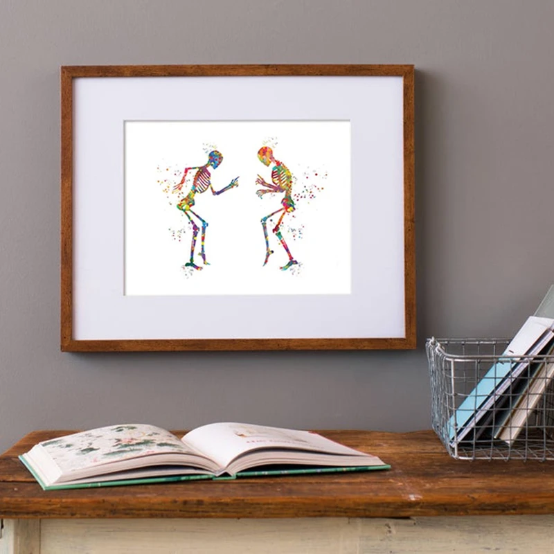 Человеческий анатомический плакат, танцевальные скелеты, забавные медицинские принты, ортопеды, подарок, акварельное искусство, холст, живопись, клиника, декор для стен