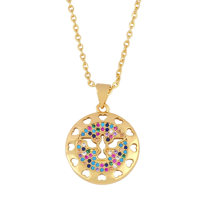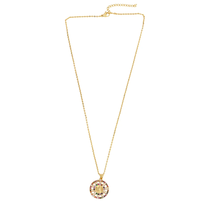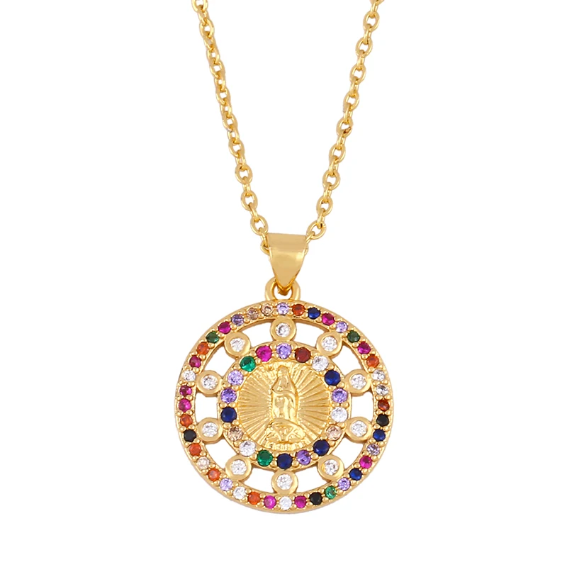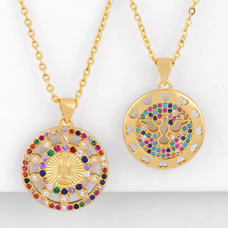 FLOLA Радуга Дева Мария подвески для женщин CZ Кристалл мира голубь подвеска ожерелья золотые украшения Дева гуадель nkeq27