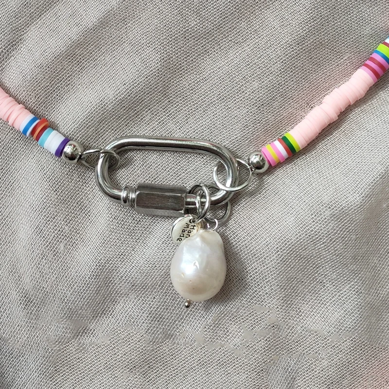 Короткое ожерелье из мягкой глины в богемном стиле, розовая Милая цепочка для девушек, подарок на день рождения, с барочным жемчугом