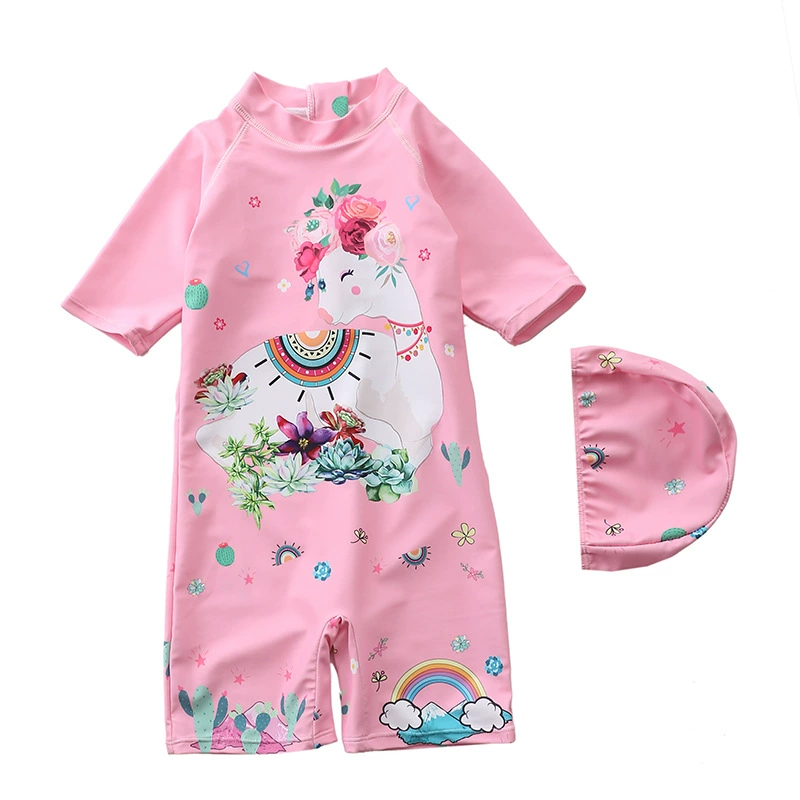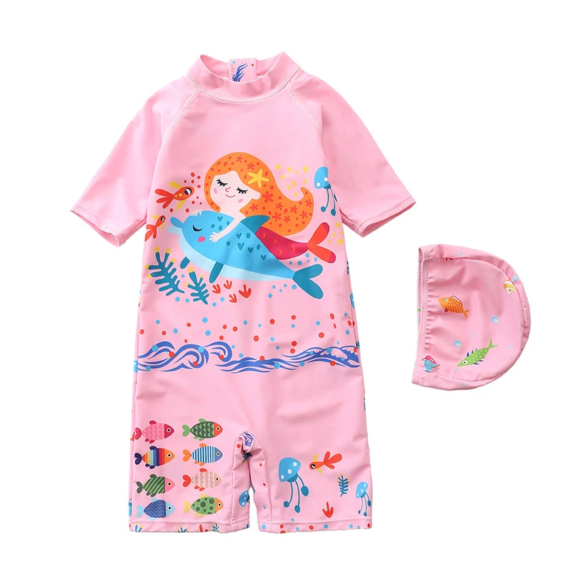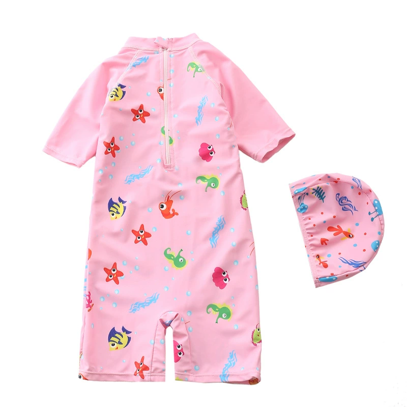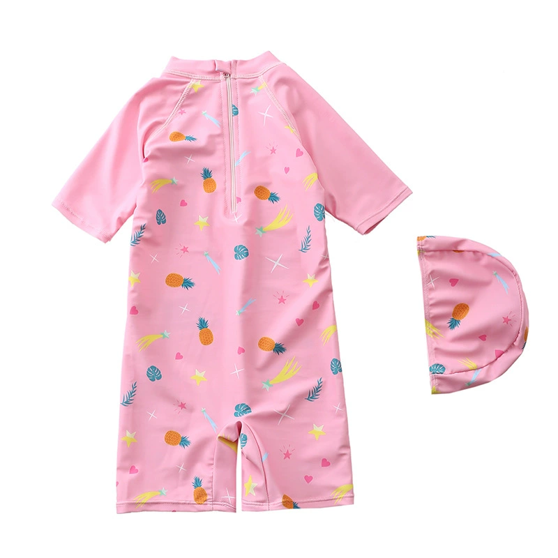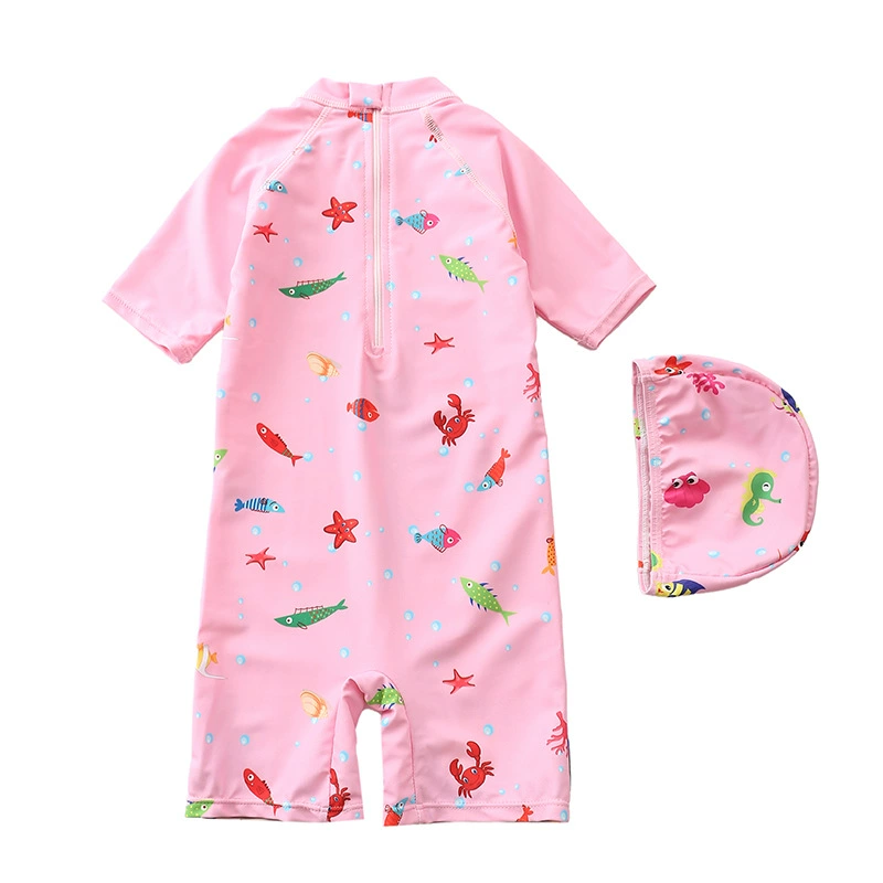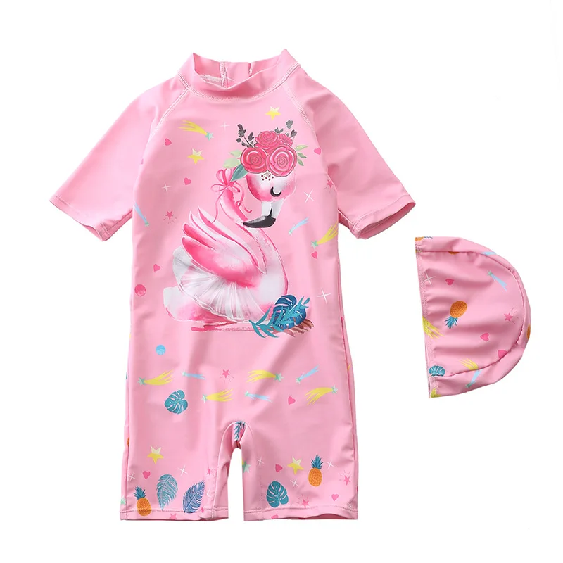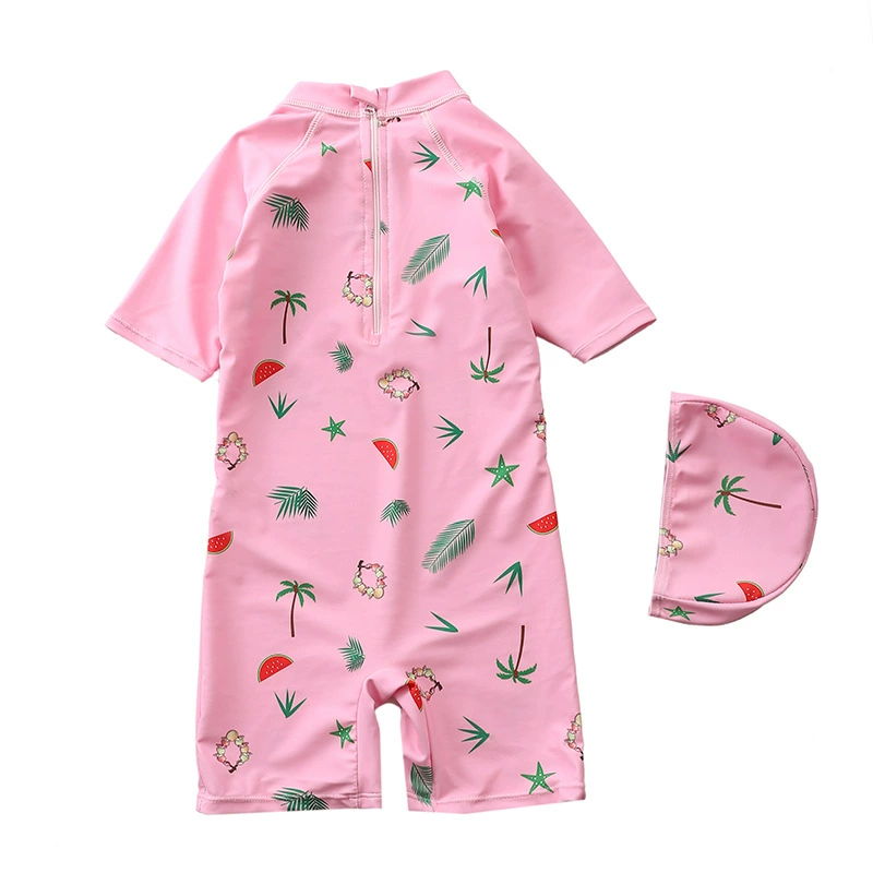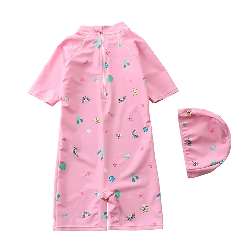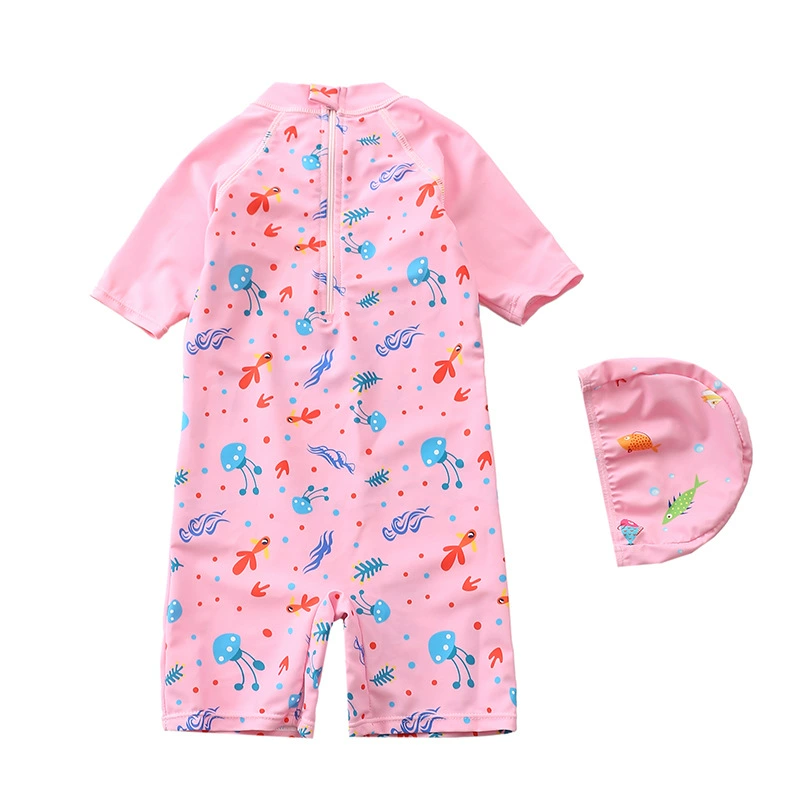 Купальник детский для девочек, слитный купальный костюм розового цвета с коротким рукавом и УФ-защитой, одежда для плавания, пляжная одежда